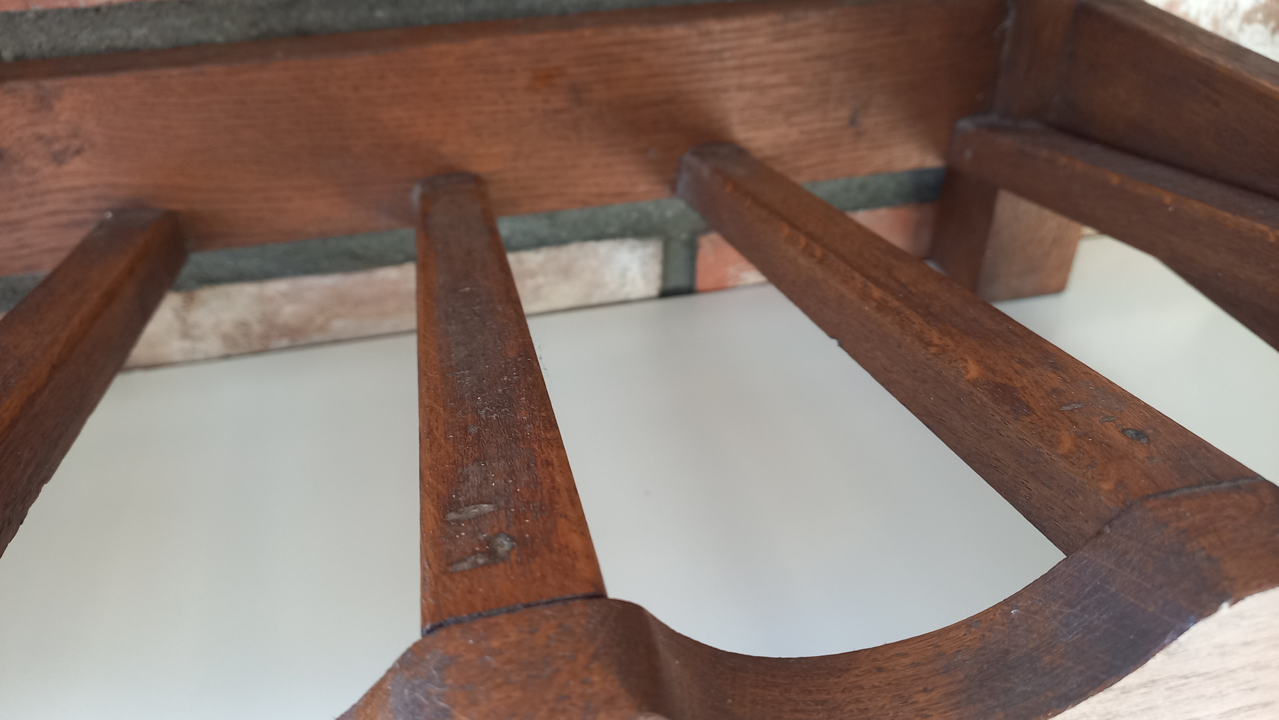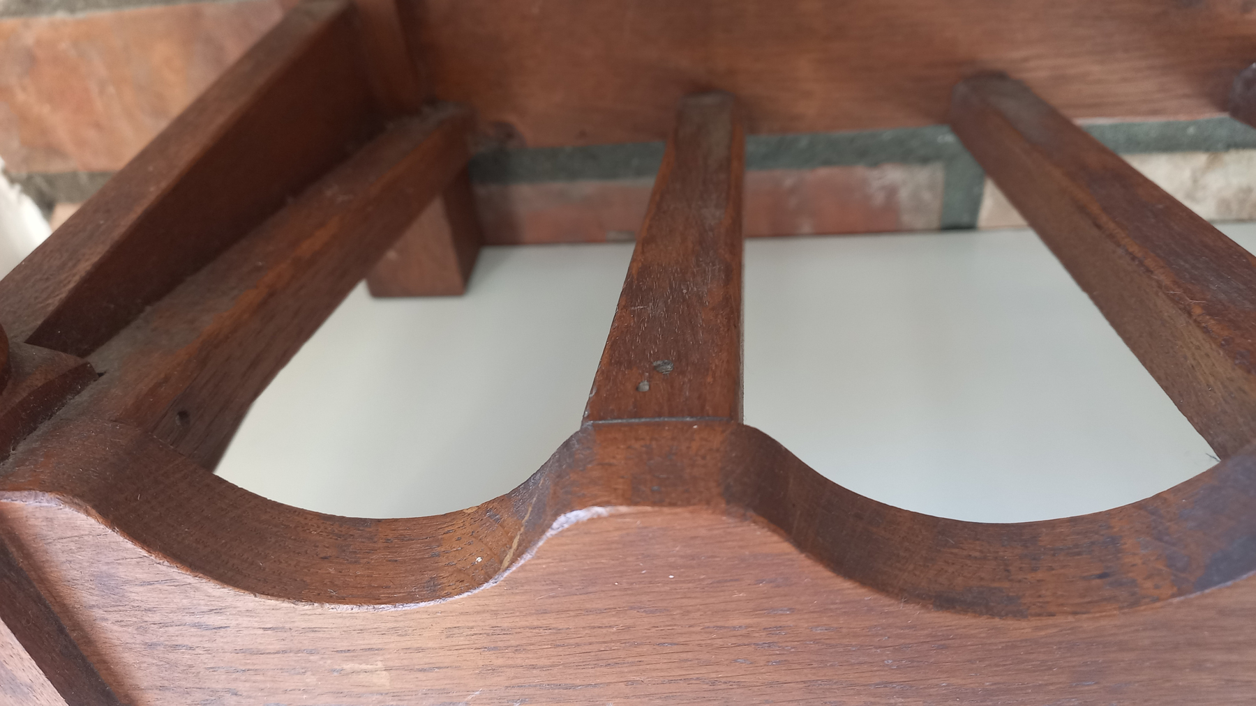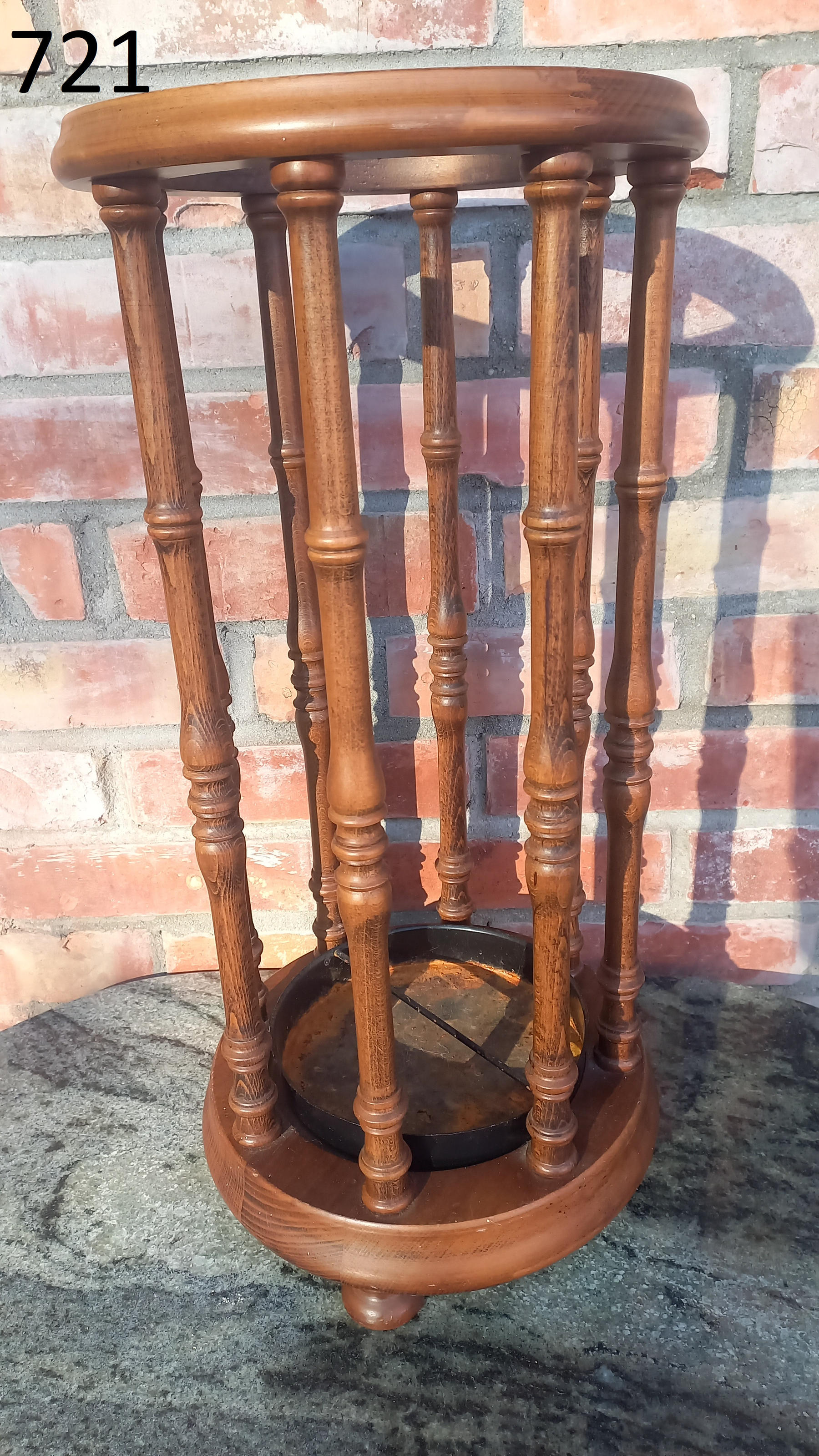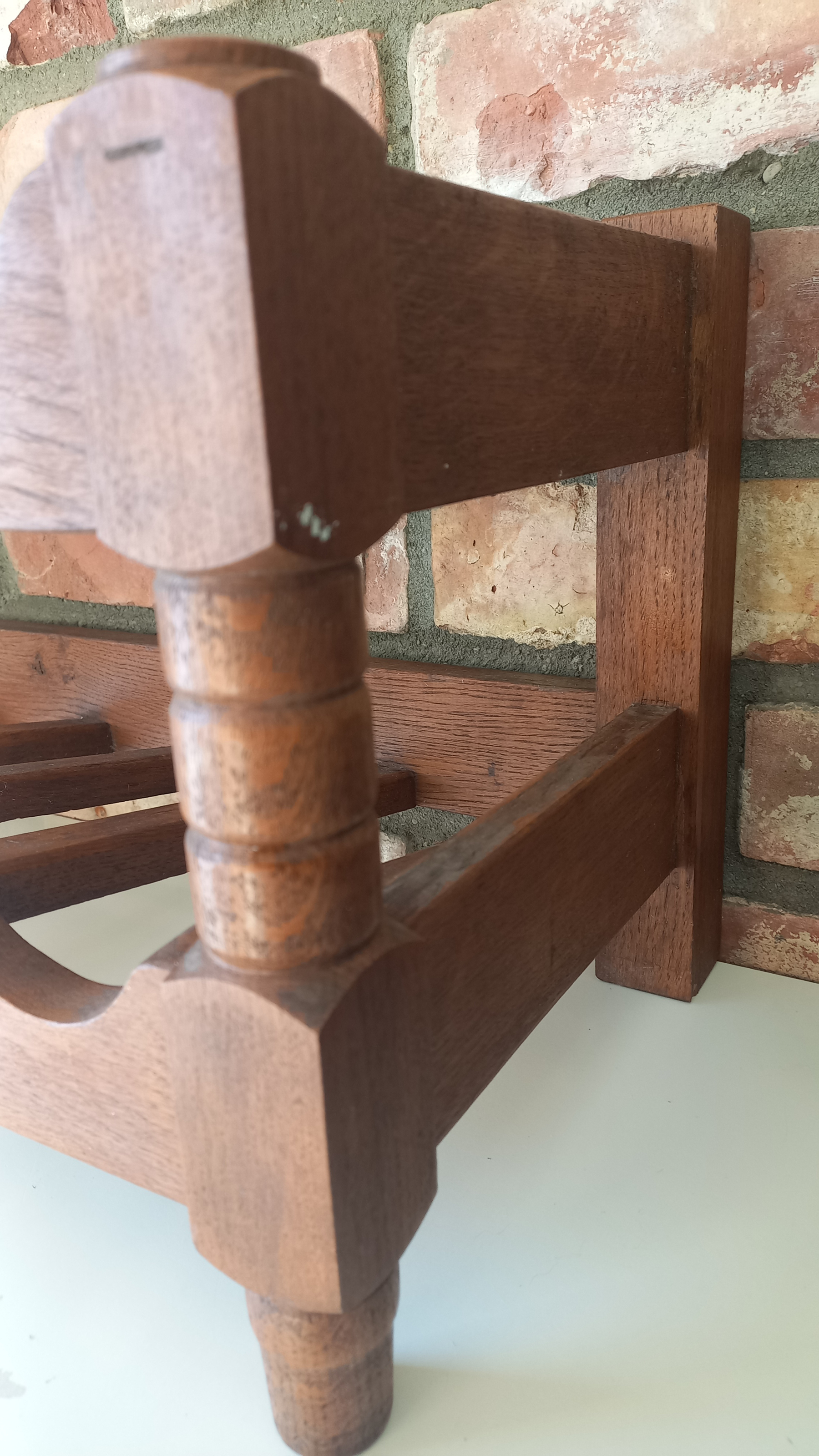 Na drewnie widnieją niewielkie ślady upływu czasu. Stojak jest stabilny i sztywny.
