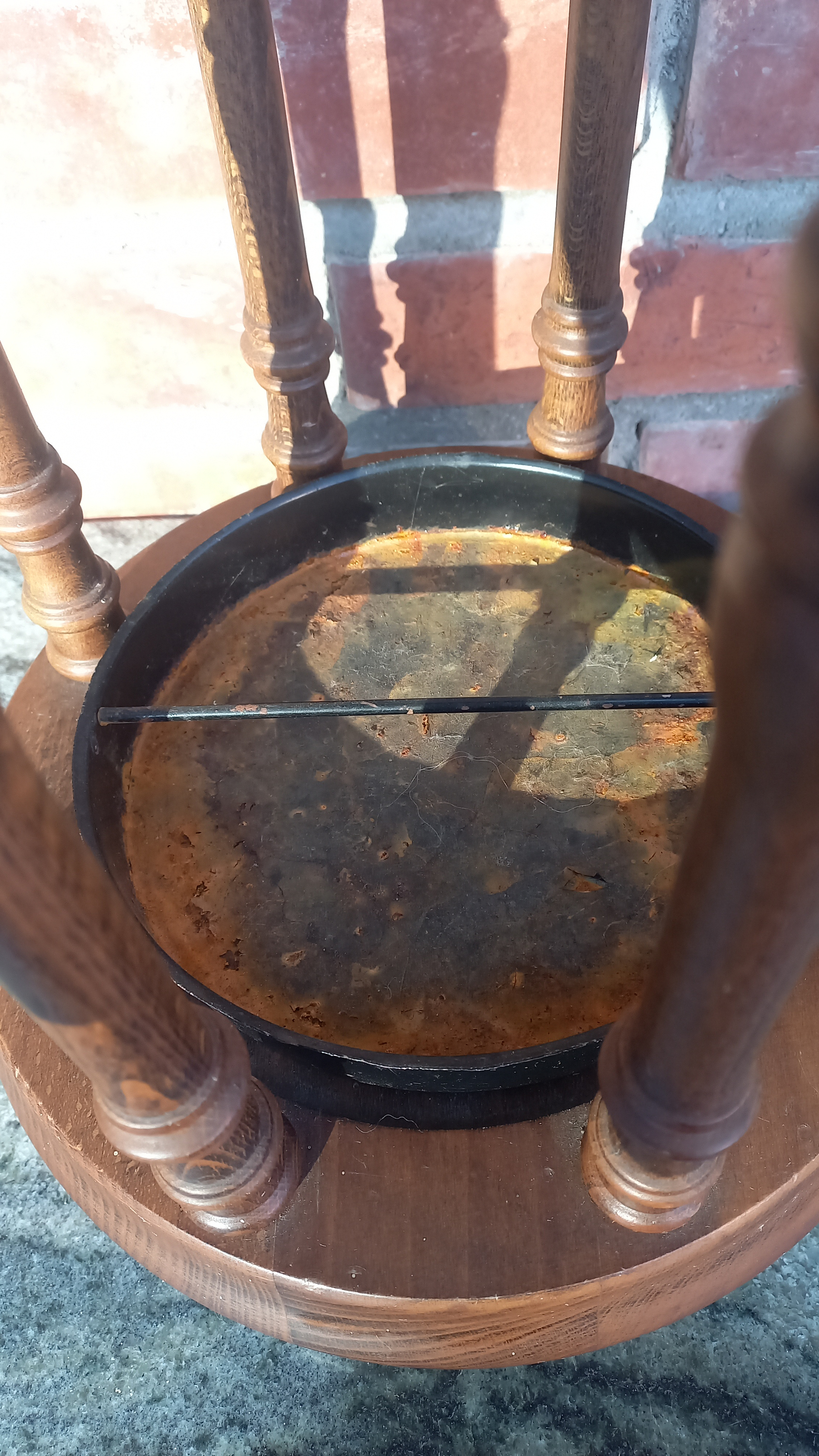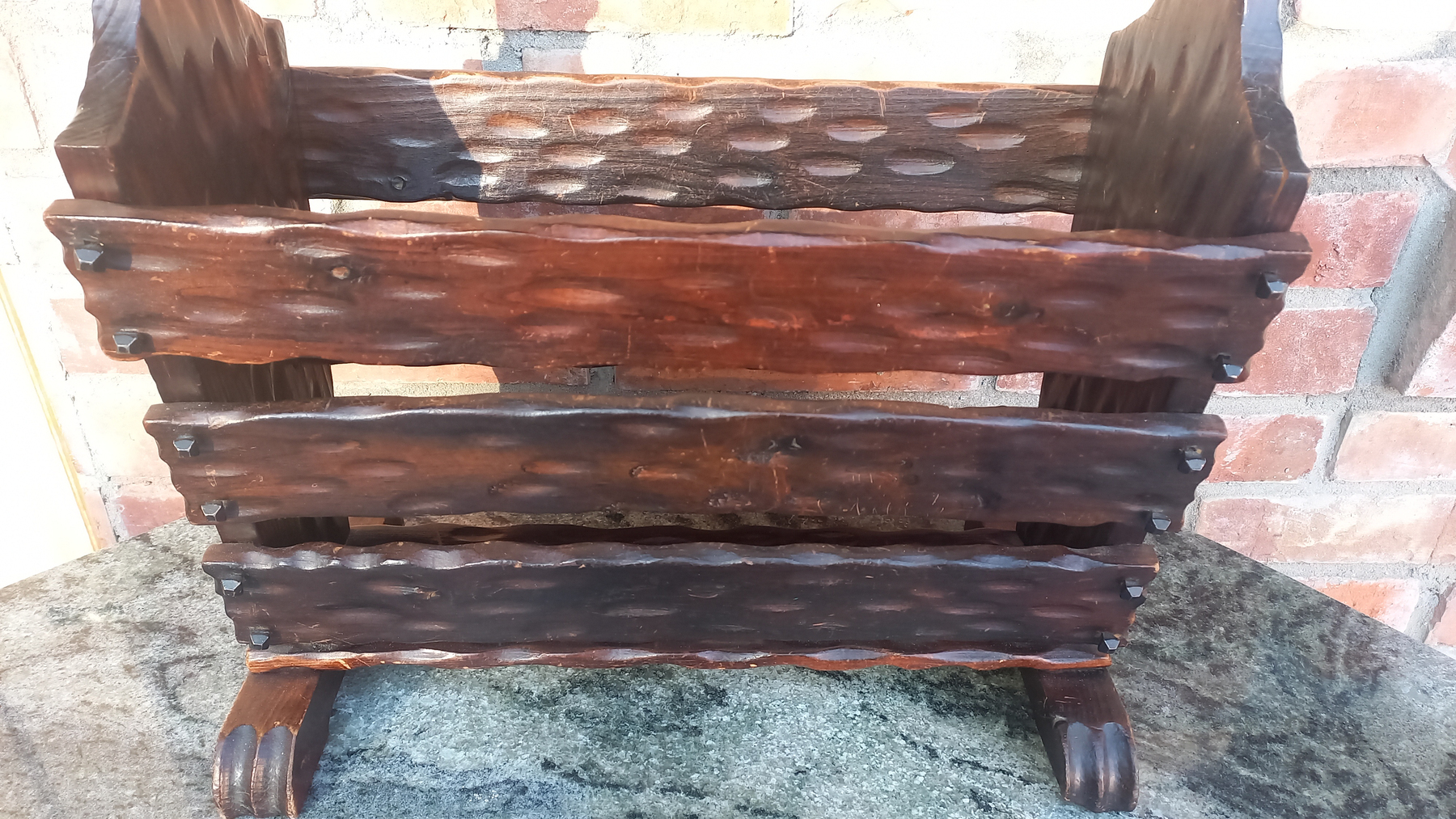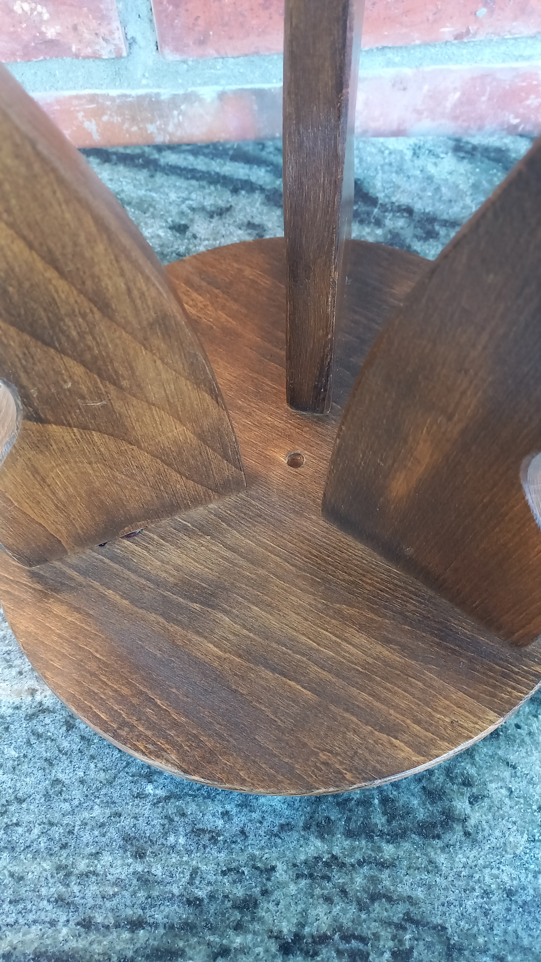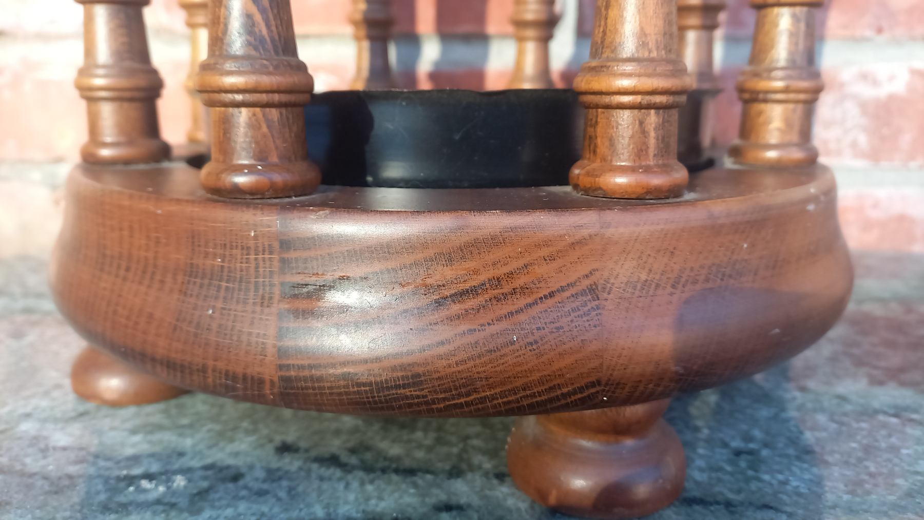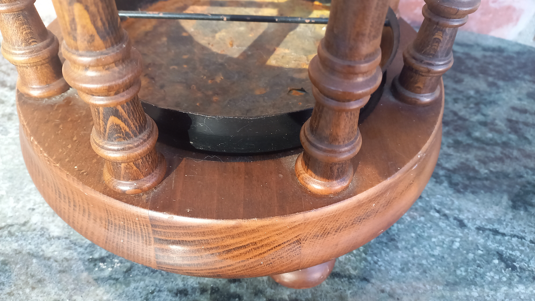 Na drewnie widnieją niewielkie ślady upływu czasu. Stojak jest stabilny i sztywny.
