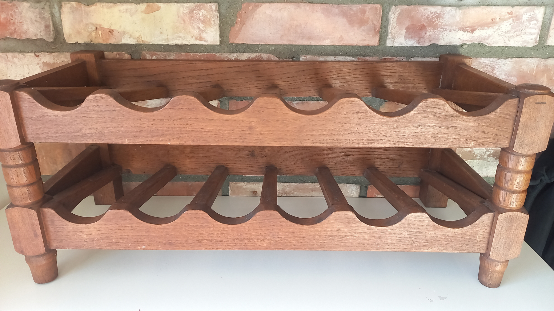 Masywny, dębowy stojak na wino.