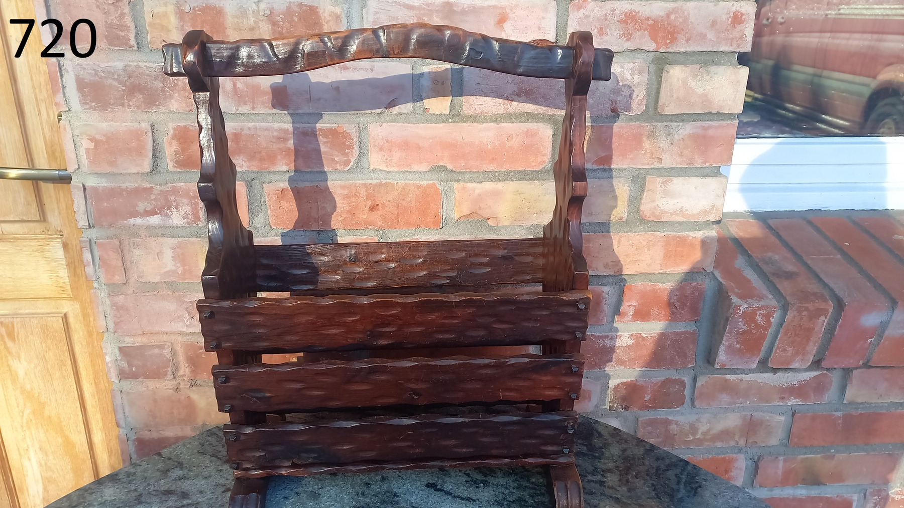 Gazetnik wykonany z drewna.