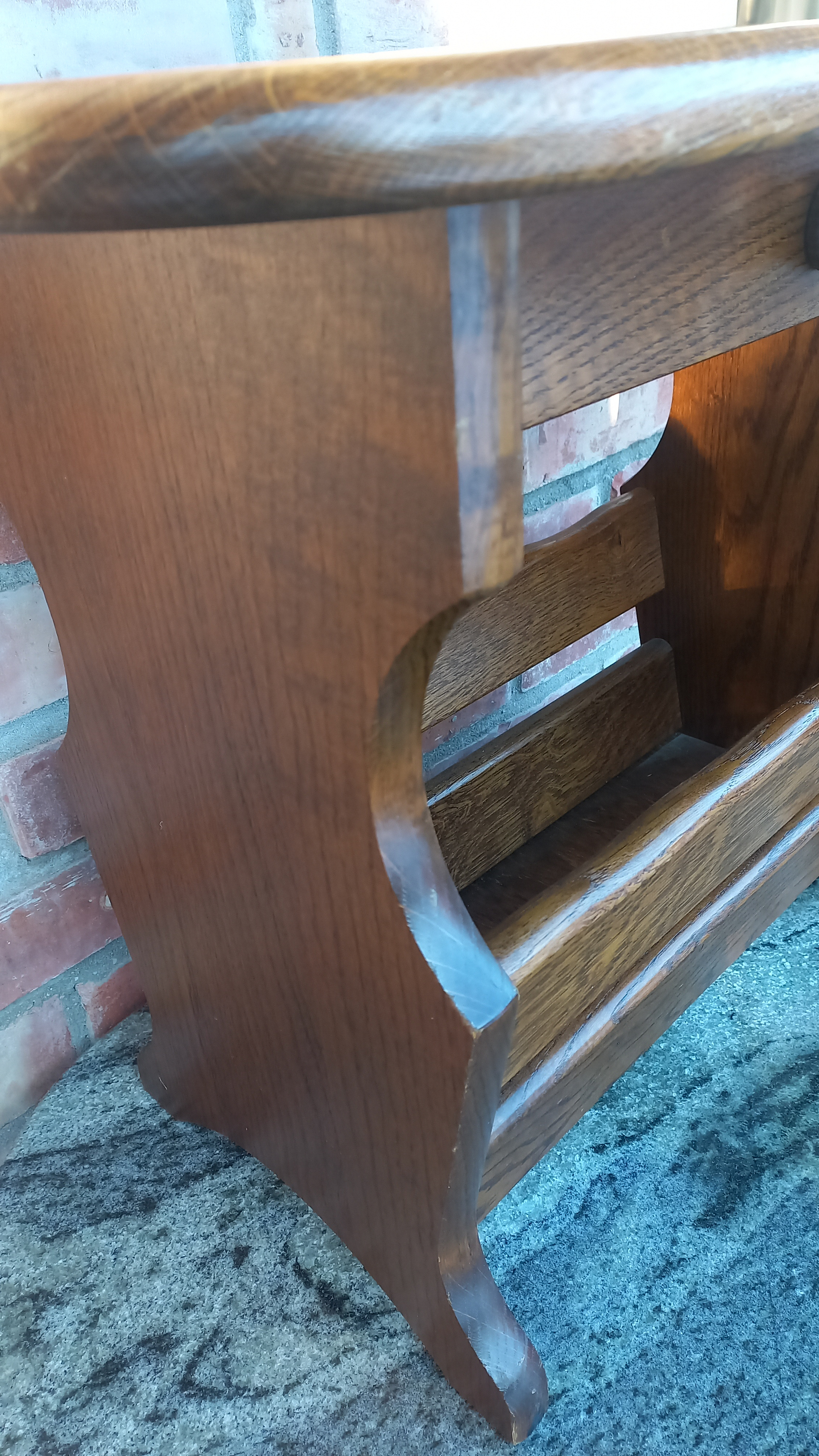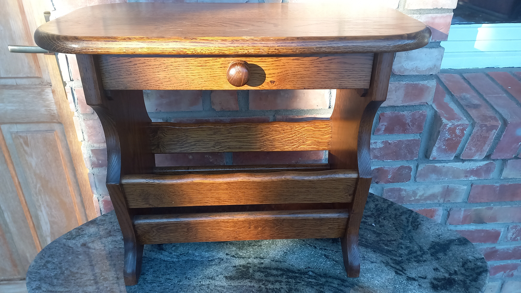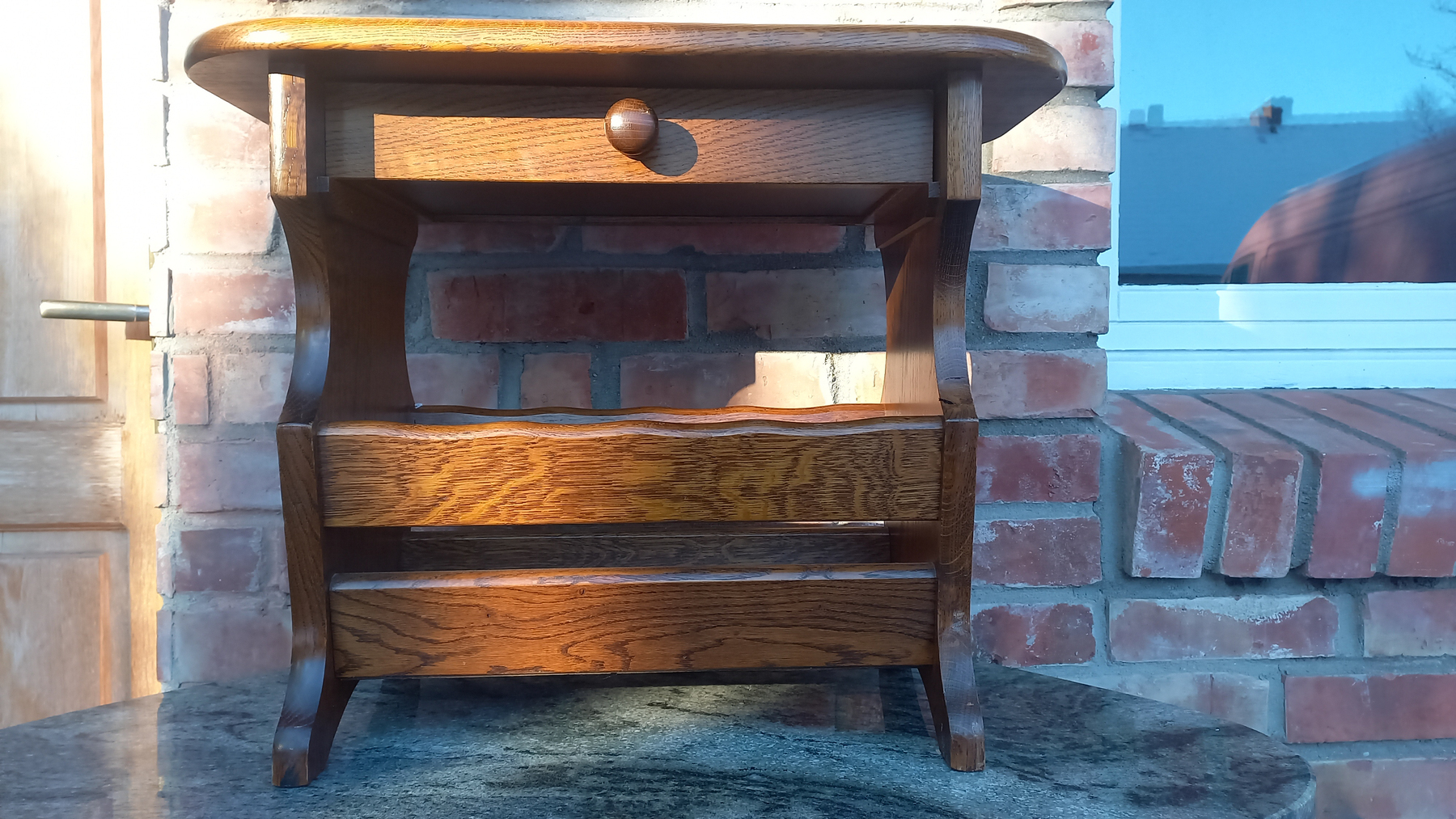 Gazetnik wykonany z drewna dębowego.