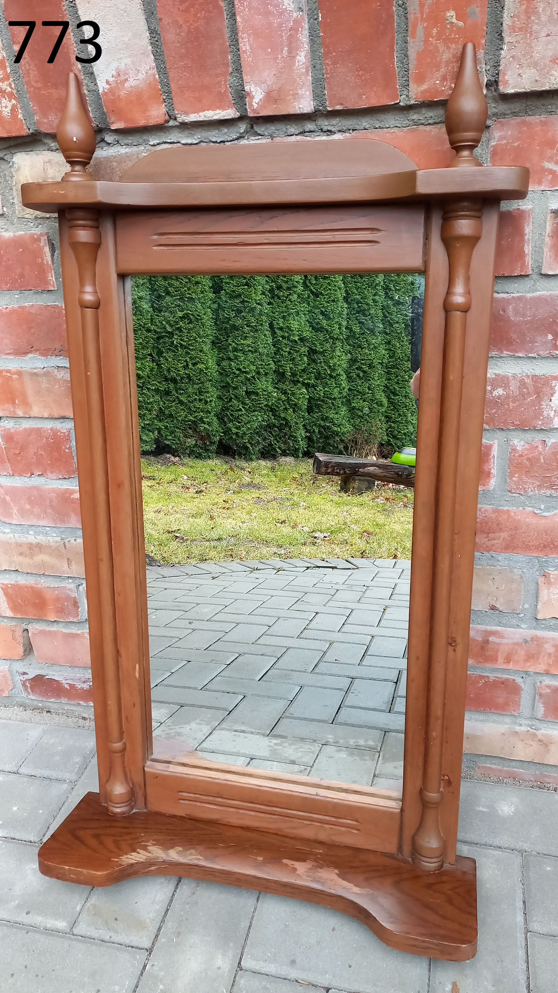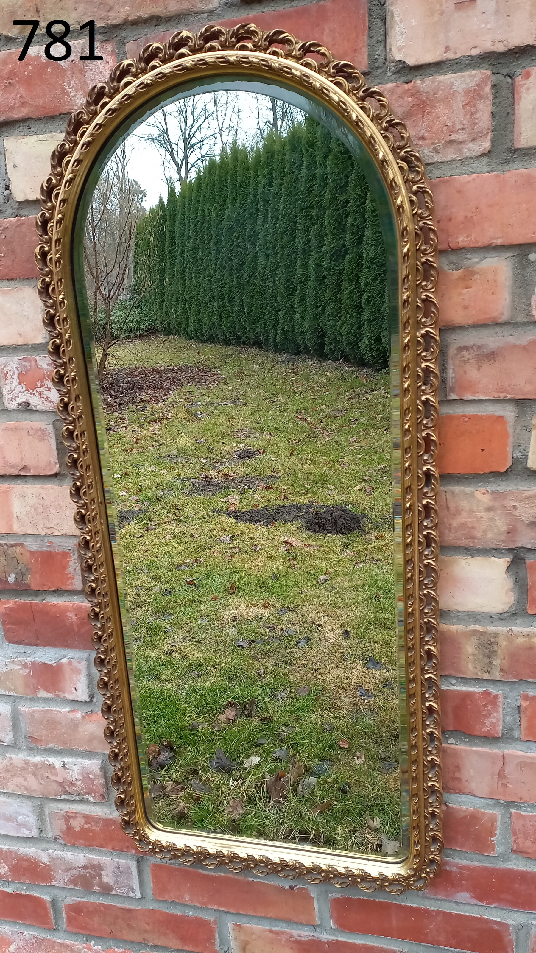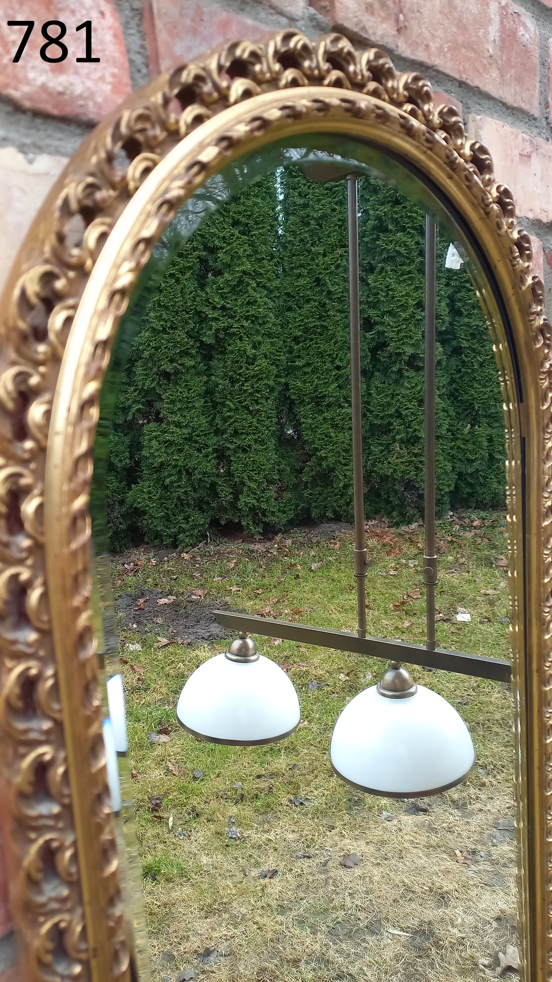 Na ramie widnieją delikatne ślady użytkowania. Tafla lustra jest ładna. Brak uchwytów do zawieszenia. Wysyłka kurierem - 50 zł (z przedpłatą na konto)