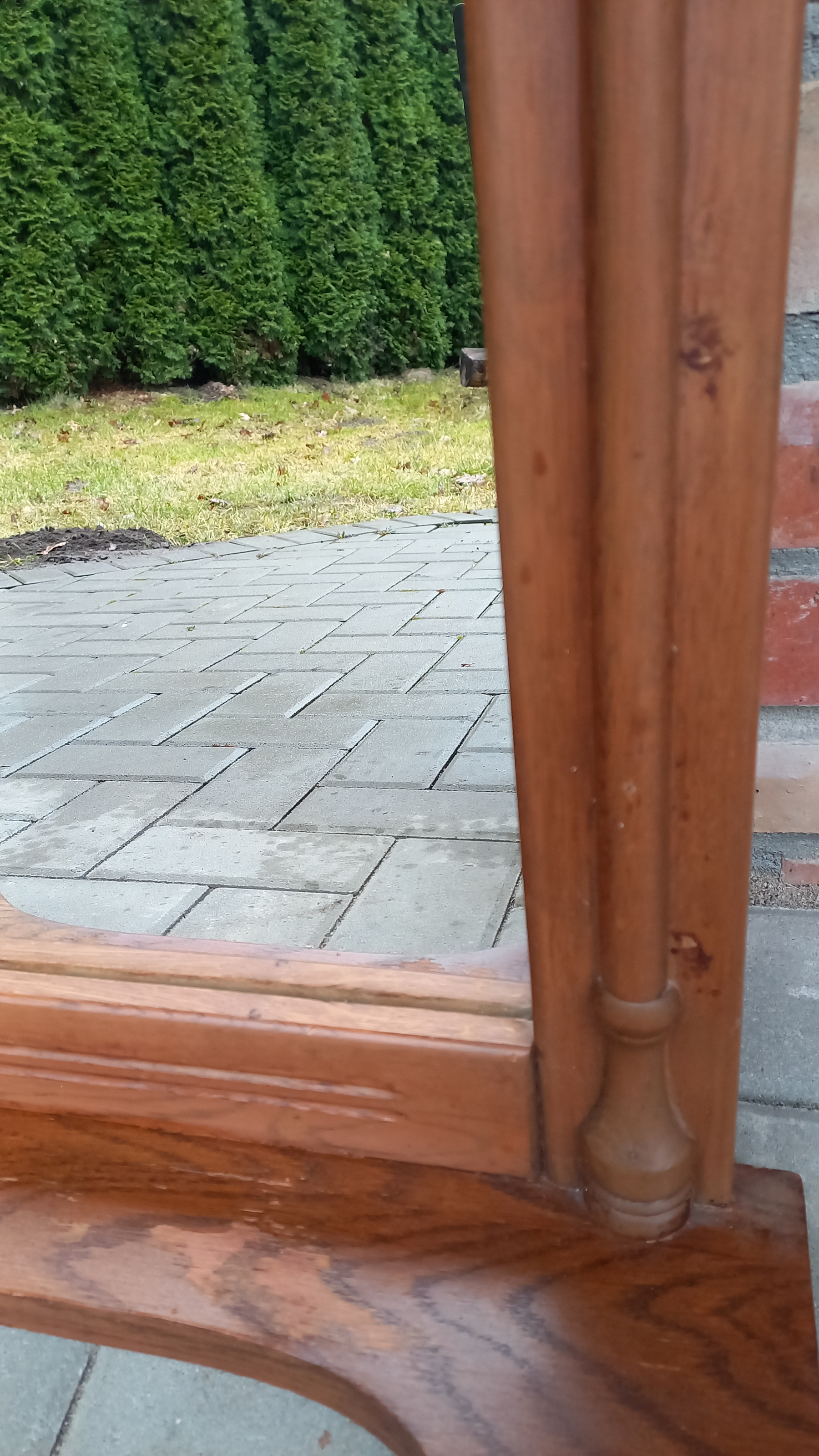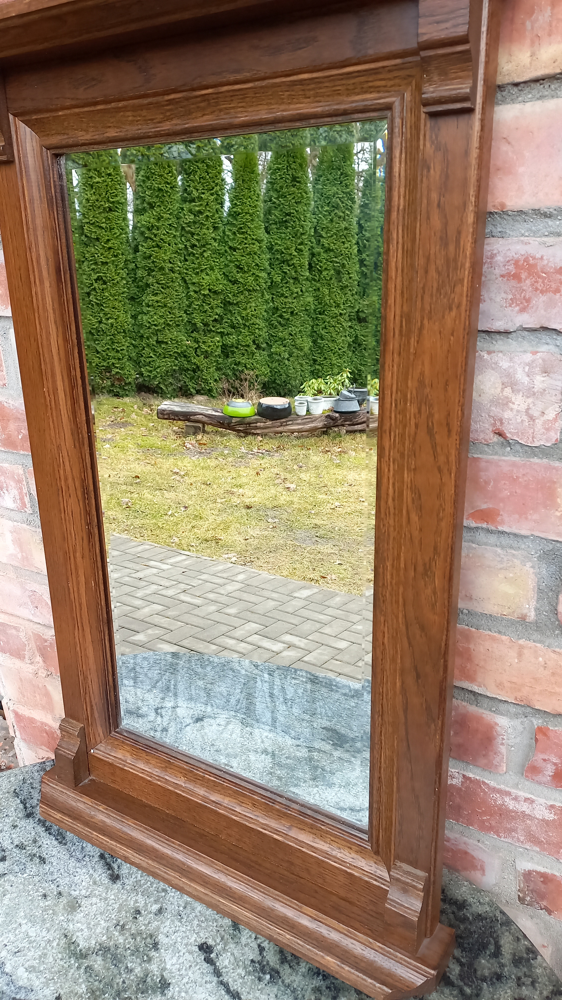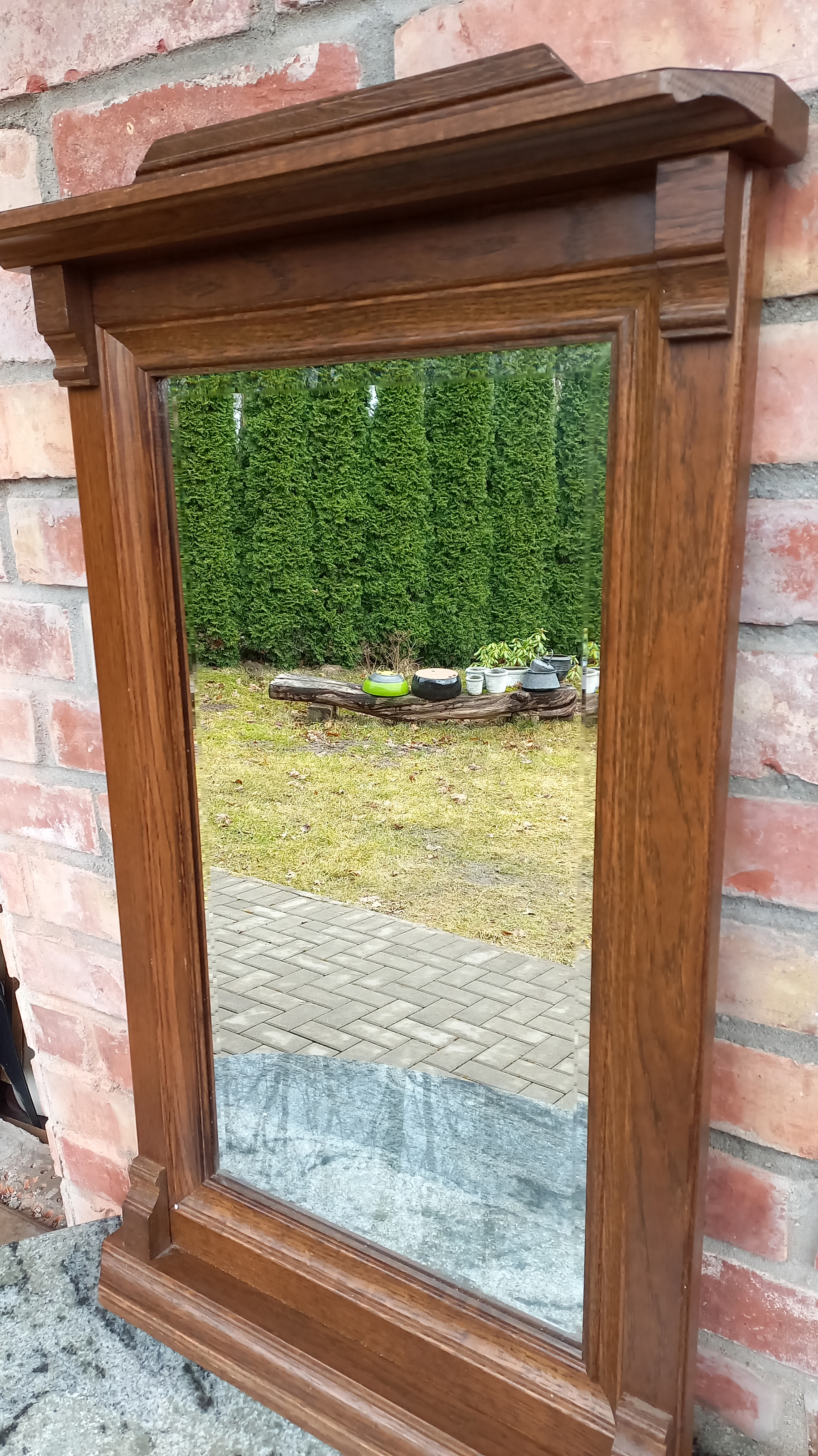 Na ramie widnieją delikatne ślady użytkowania. Tafla lustra jest ładna. Brak uchwytów do zawieszenia. Wysyłka kurierem - 50 zł (z przedpłatą na konto)