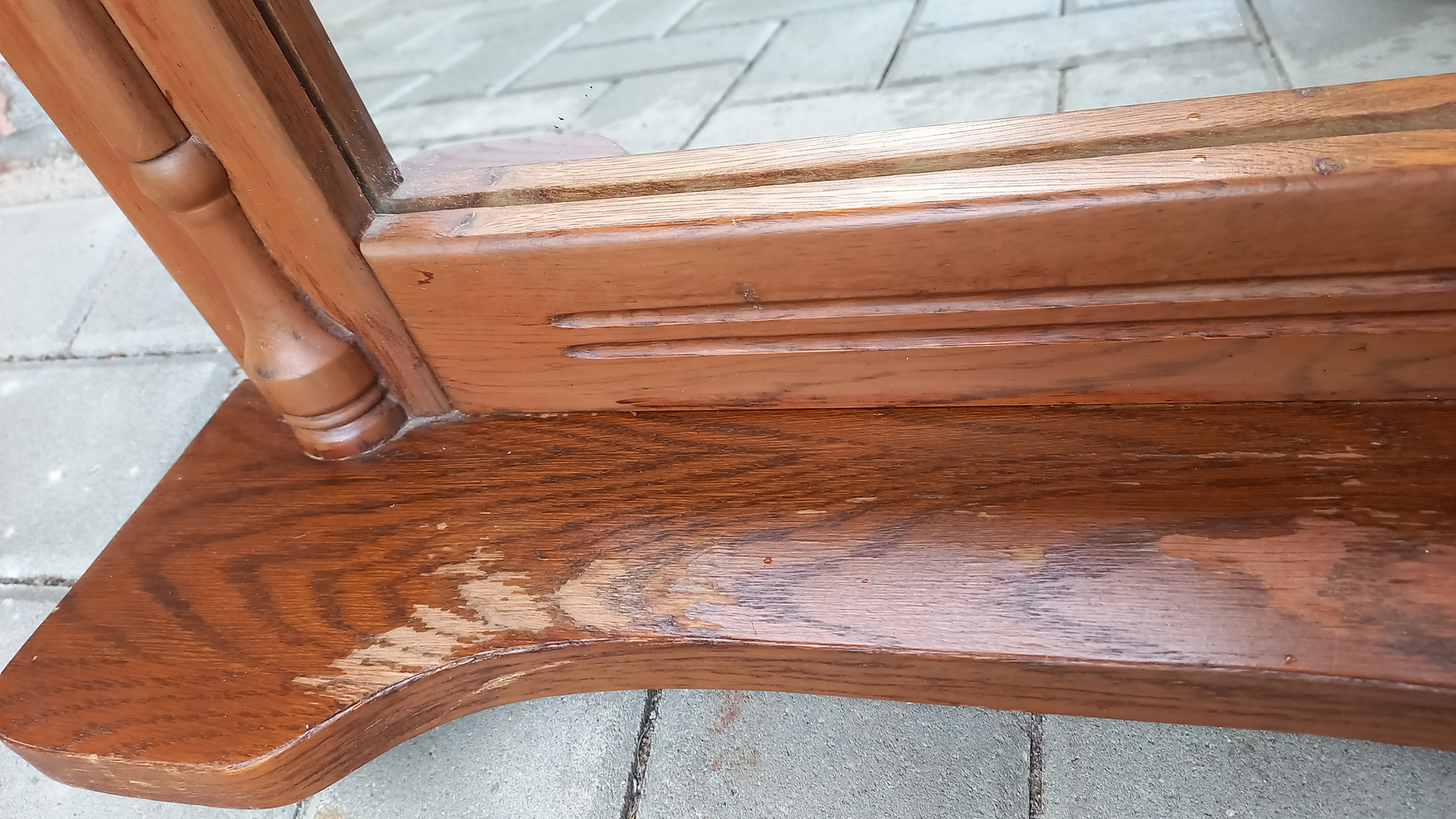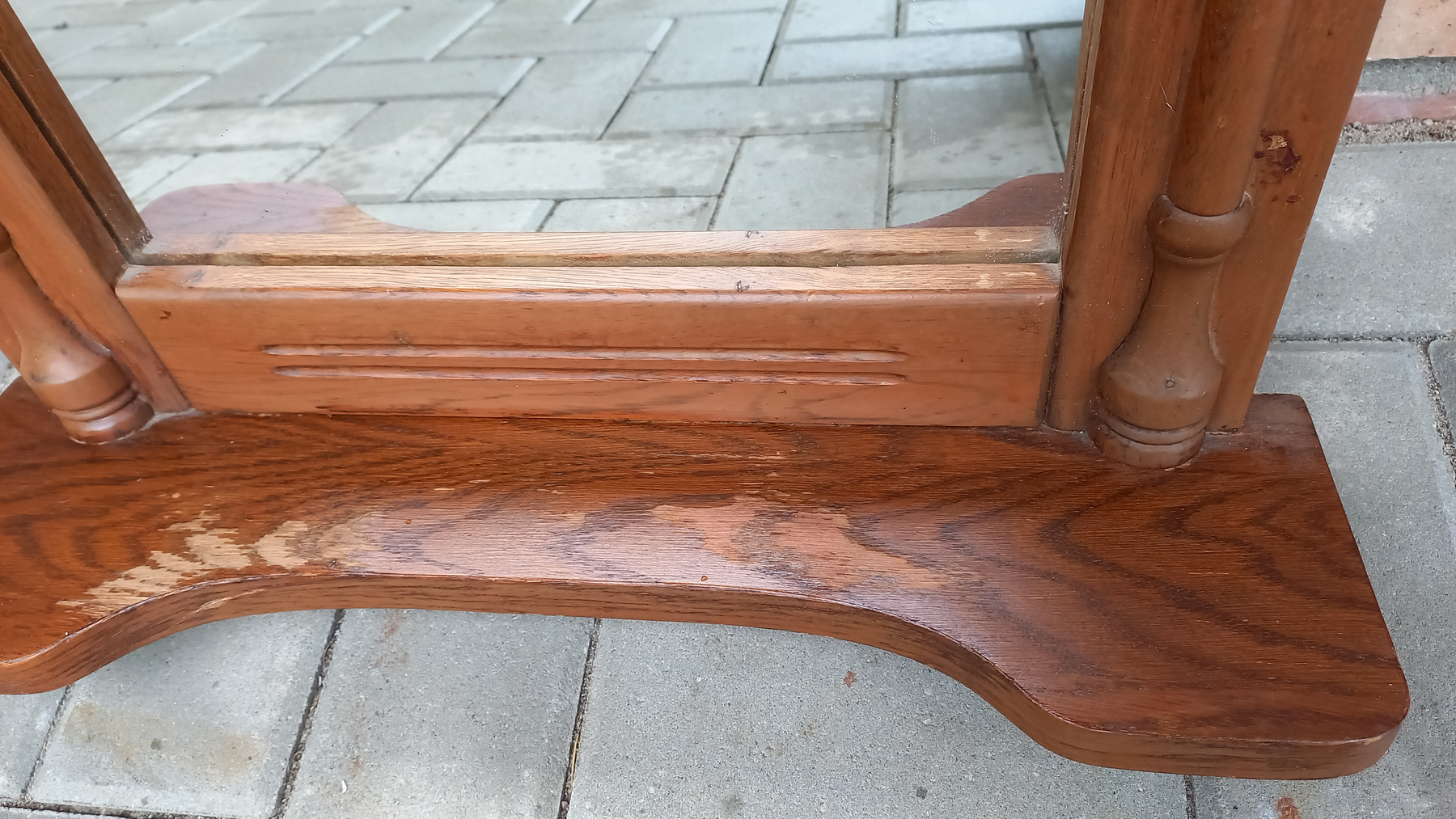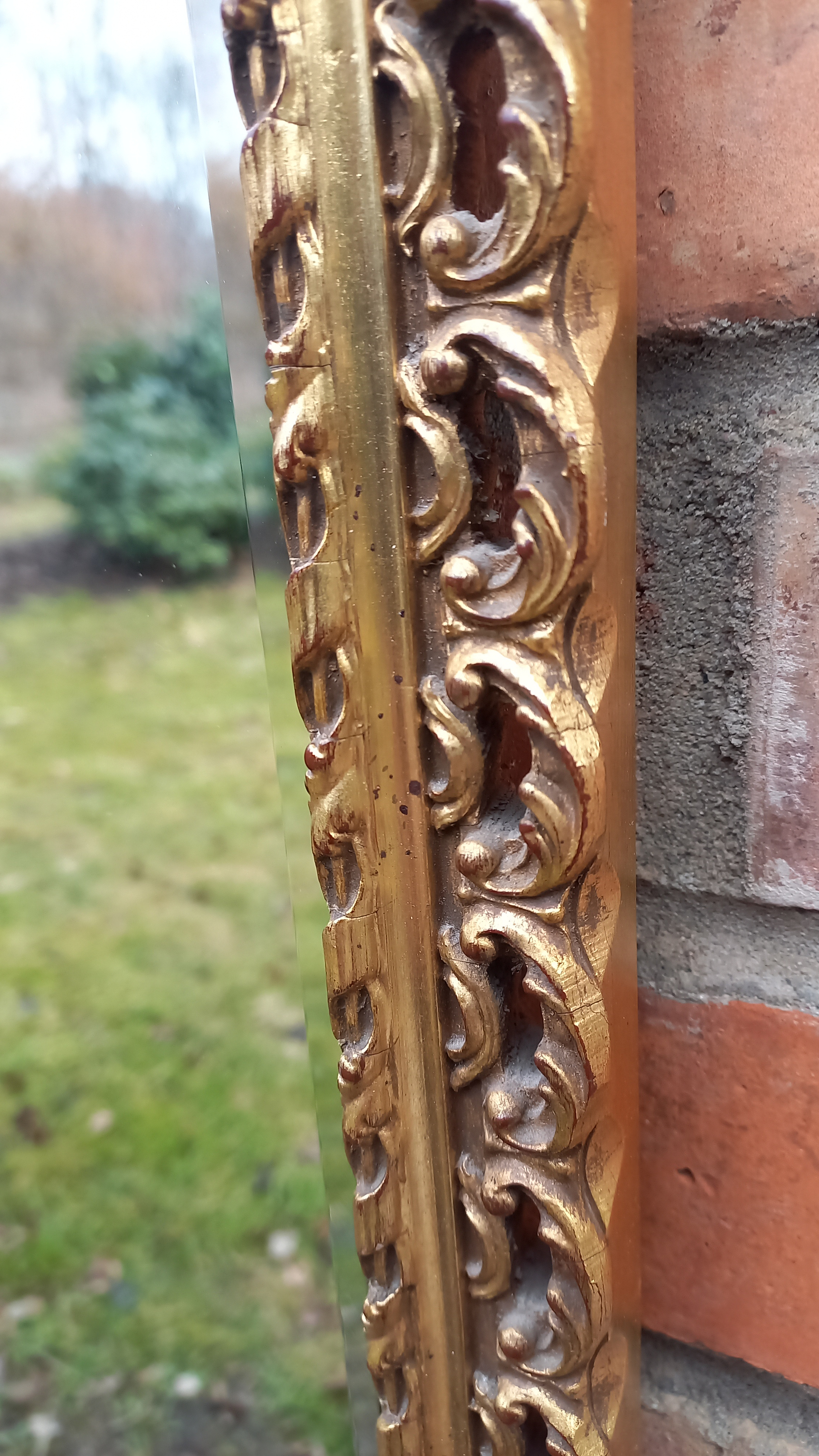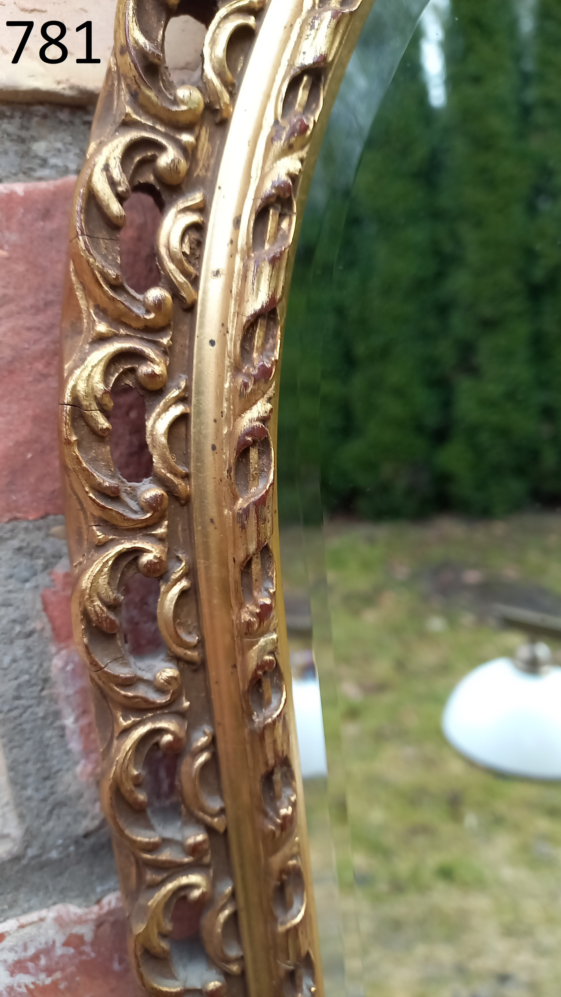 Na ramie widnieją delikatne ślady użytkowania. Tafla lustra jest ładna.