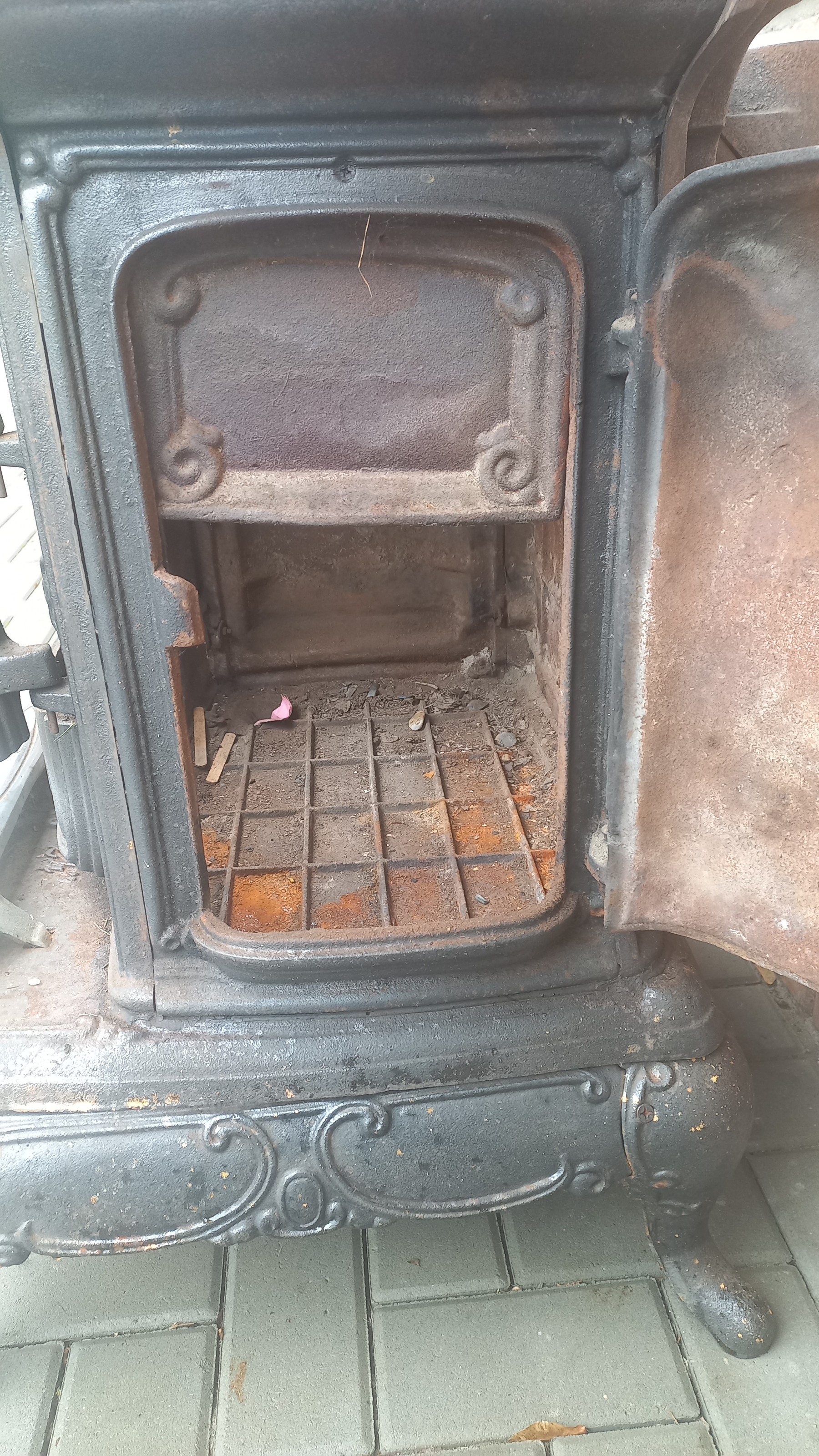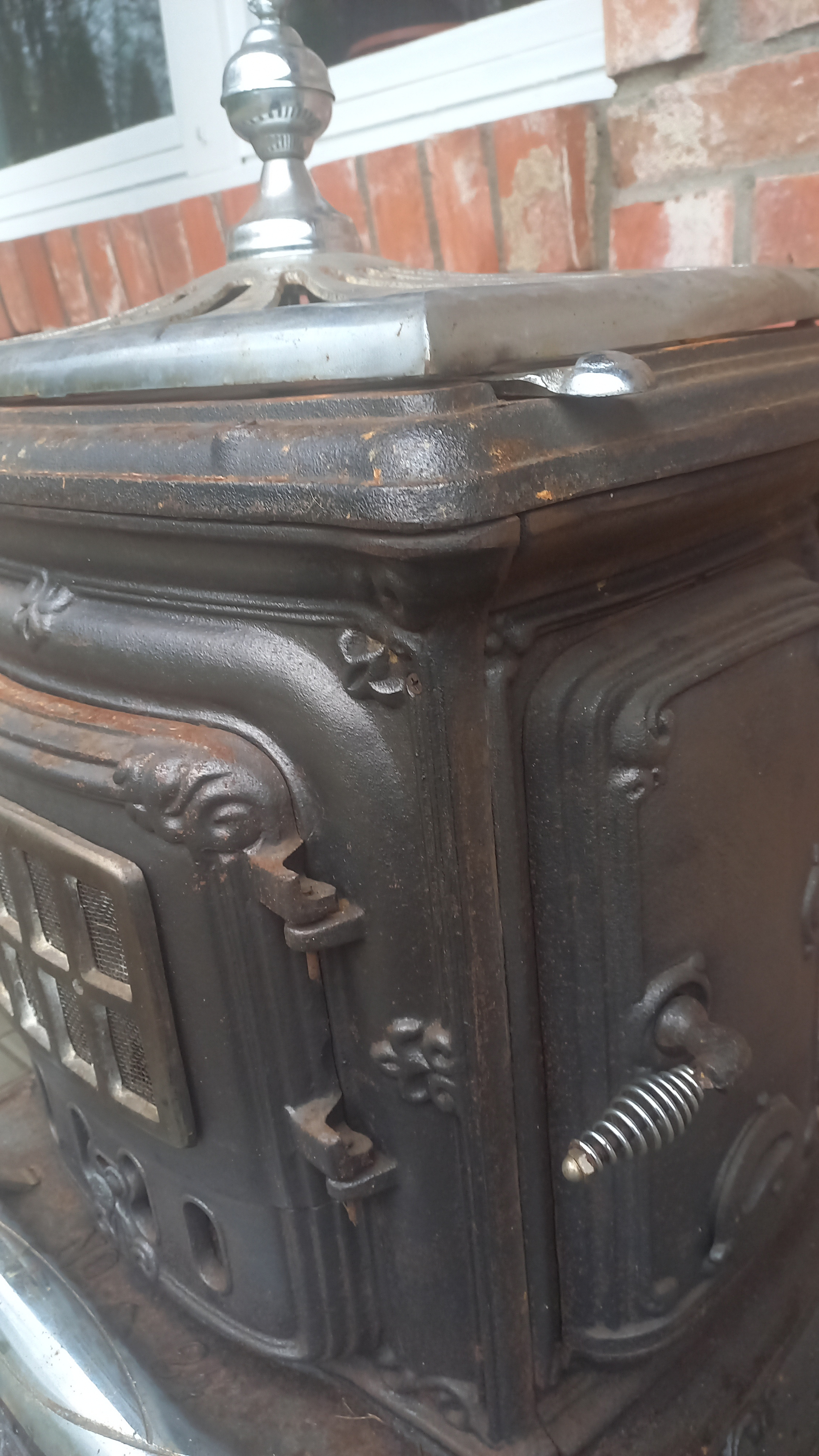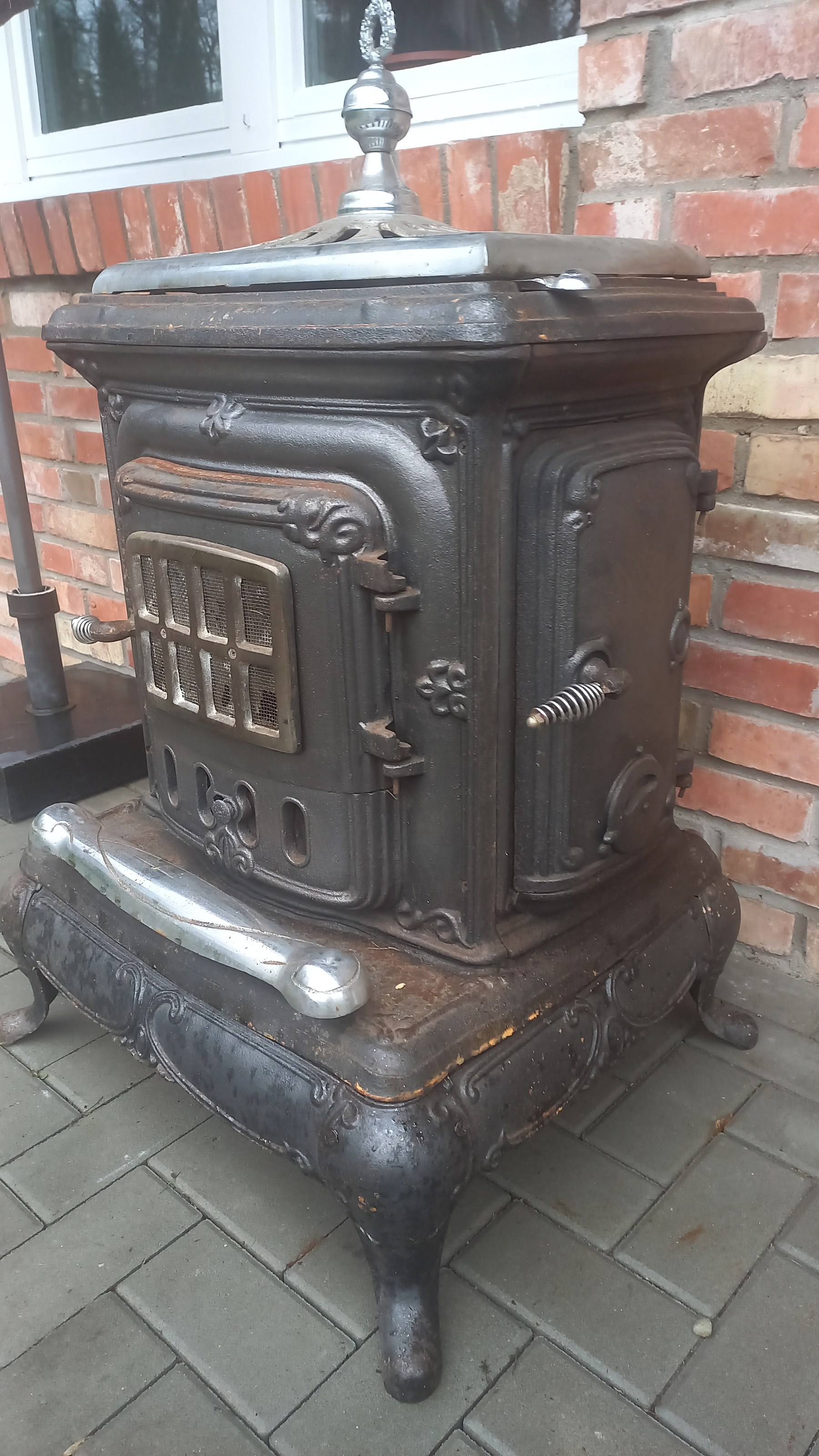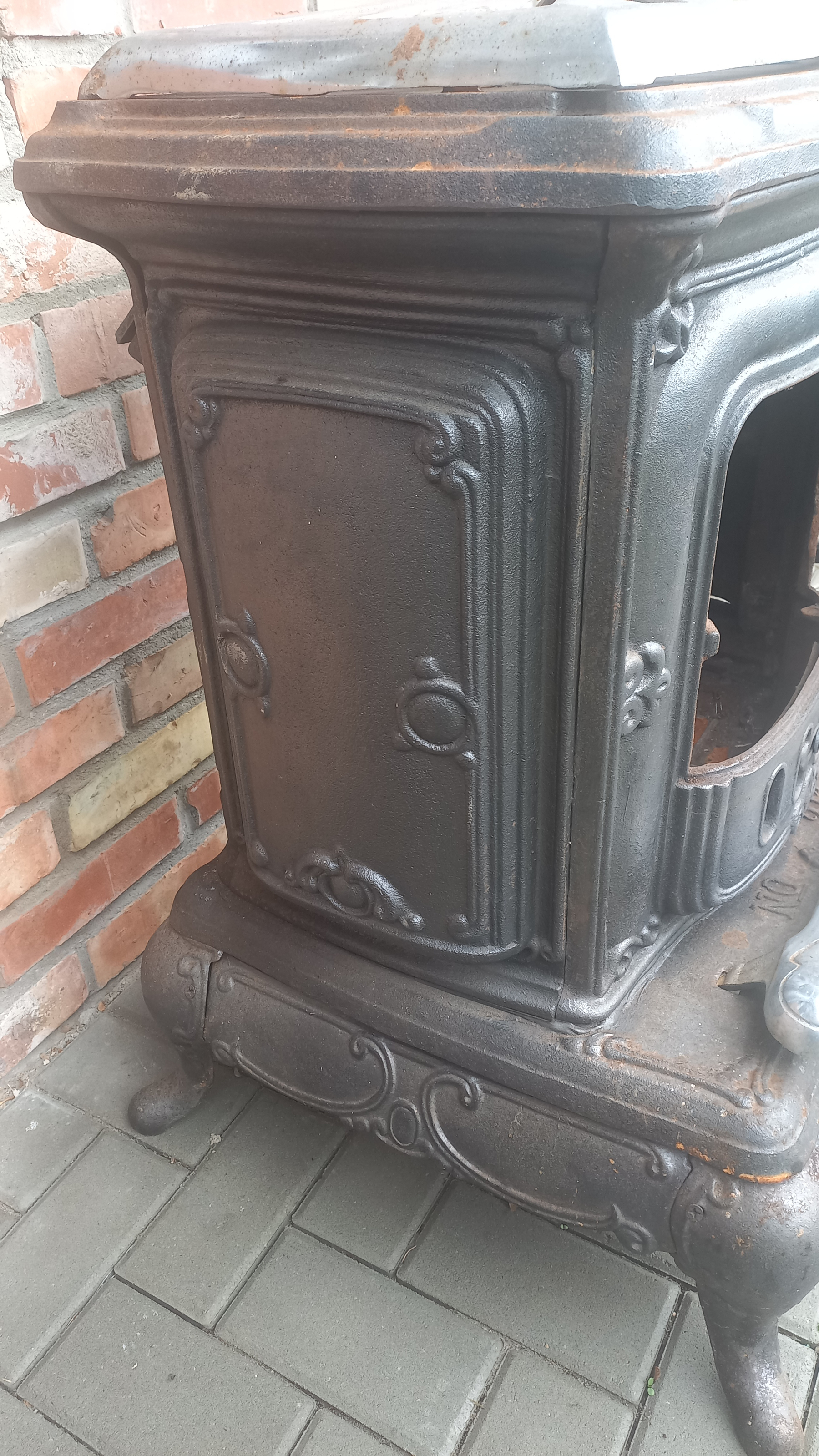 Piecyk przywieziony z Holandii. Piecyk składa się z 3 części. Piekarnik otwierany jest z dwóch stron. Palenisko jest całe.