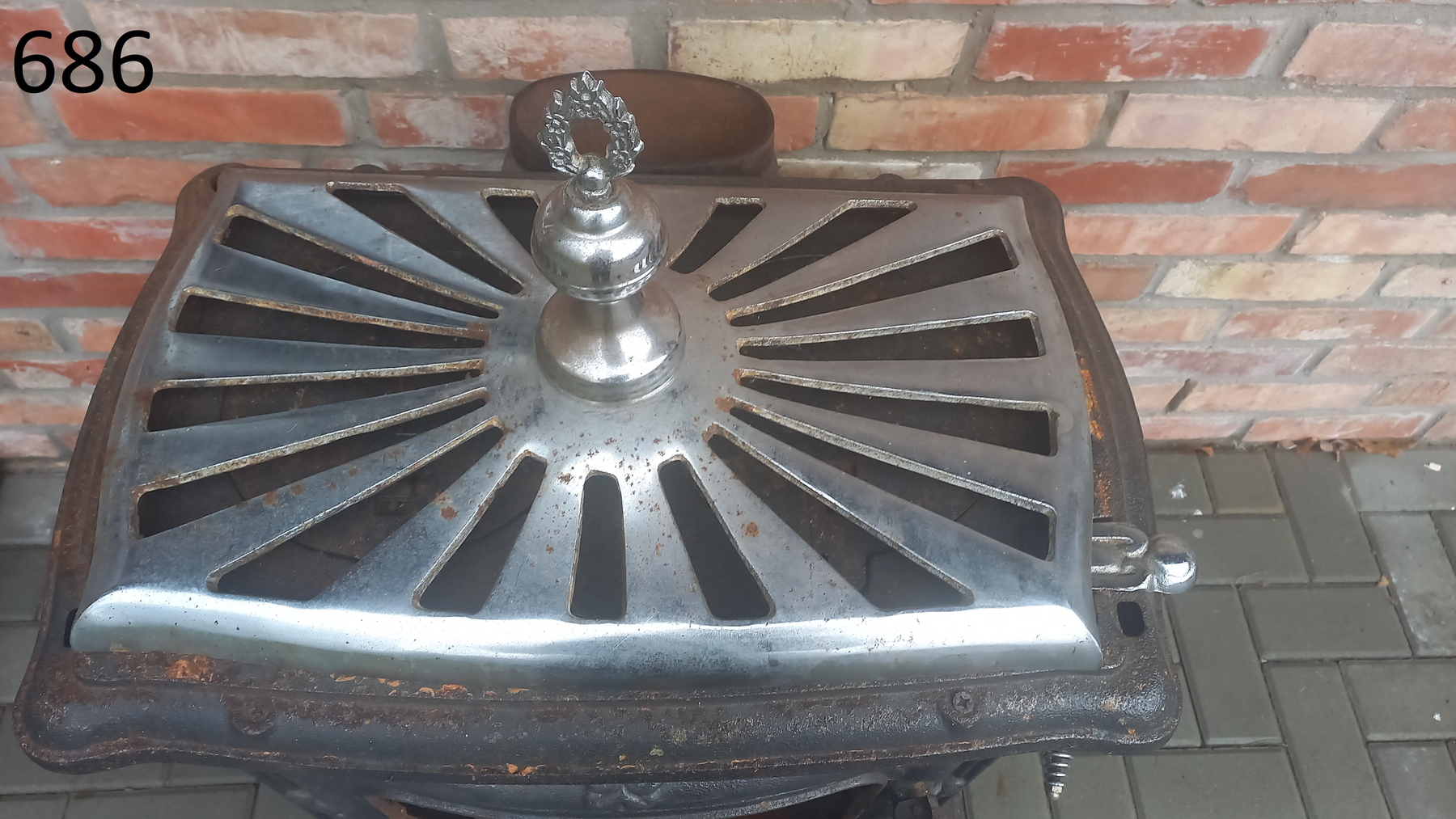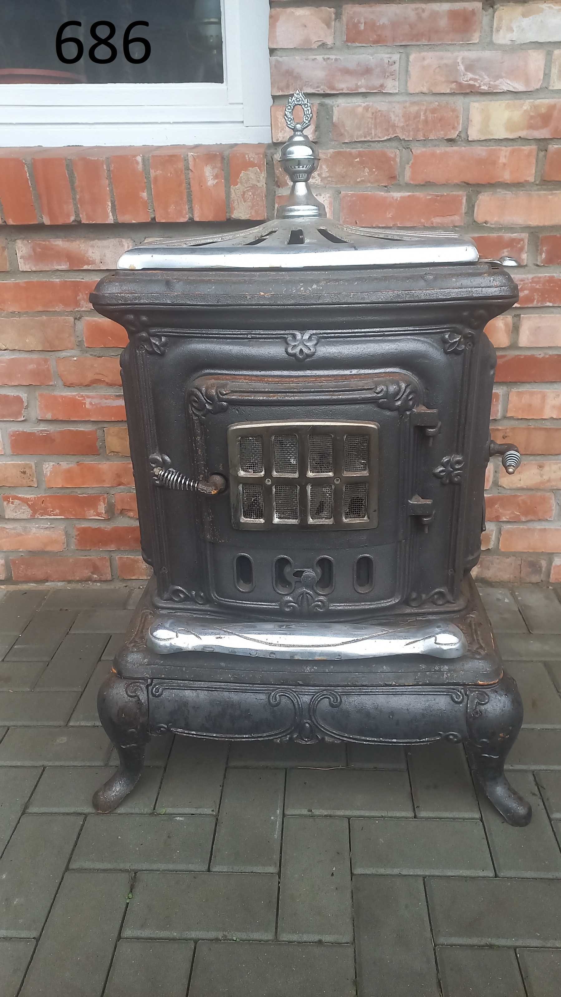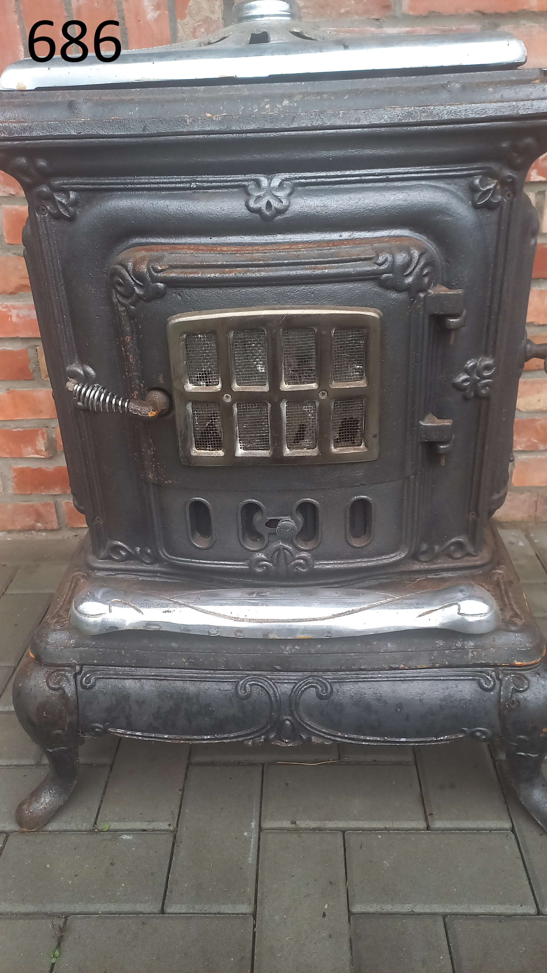 Piecyk przywieziony z Holandii. Piecyk składa się z 3 części. Piekarnik otwierany jest z dwóch stron. Palenisko jest całe.