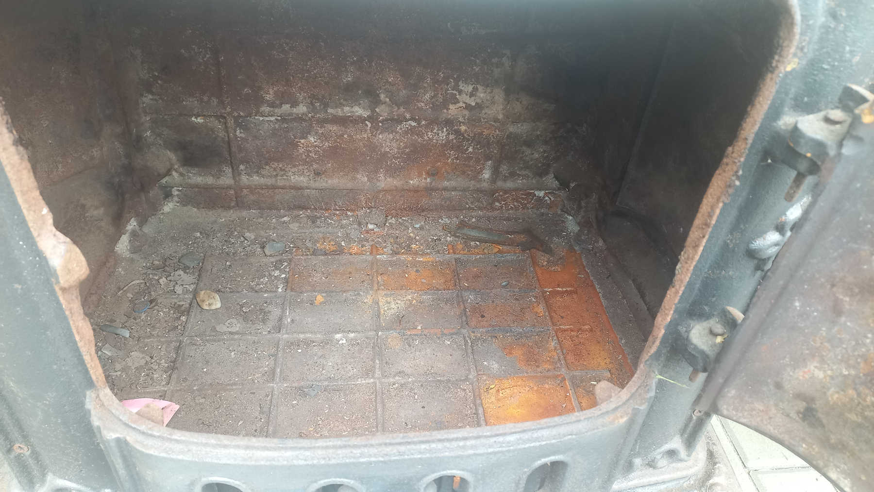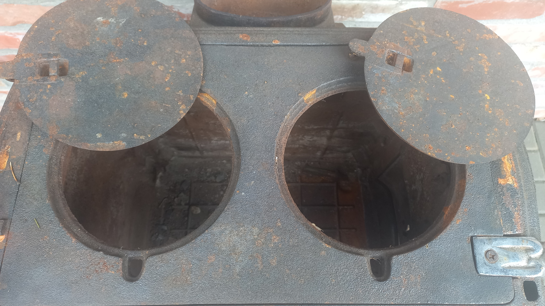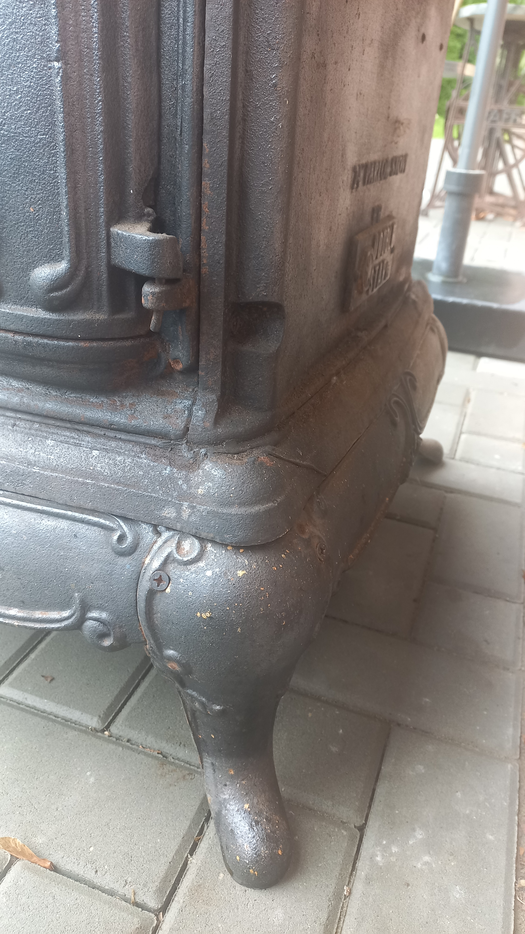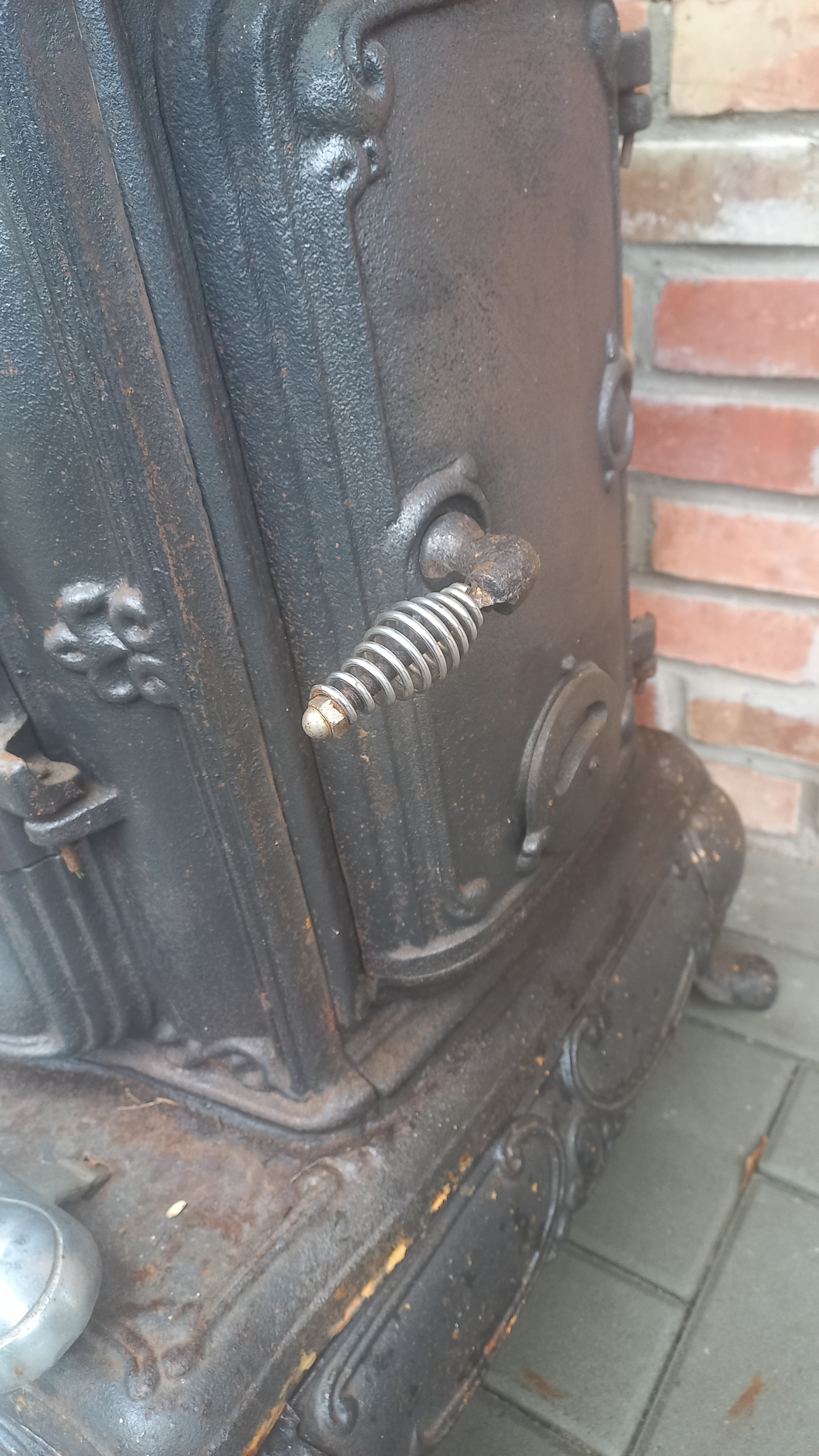 Piecyk przywieziony z Holandii. Piecyk składa się z 3 części. Piekarnik otwierany jest z dwóch stron. Palenisko jest całe.
