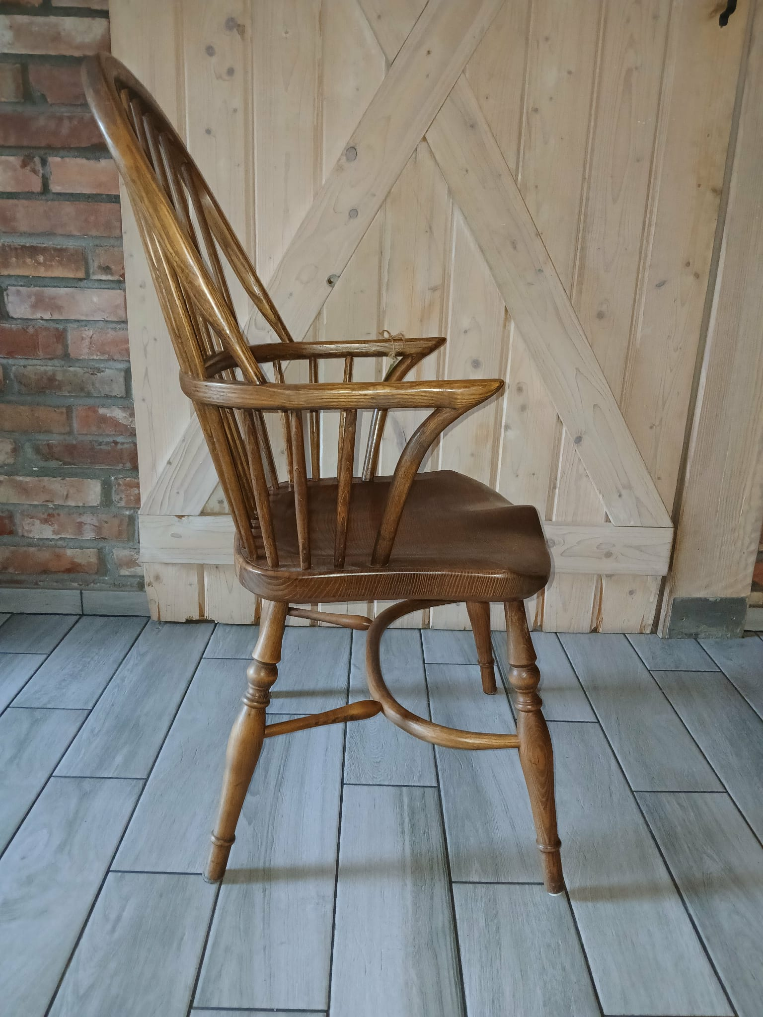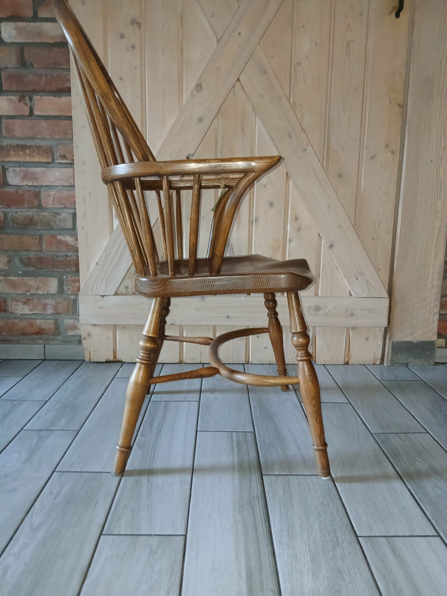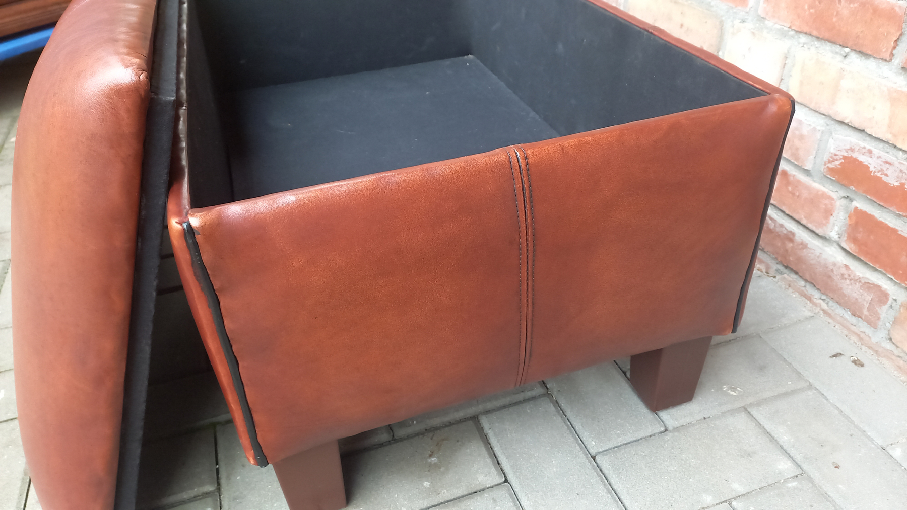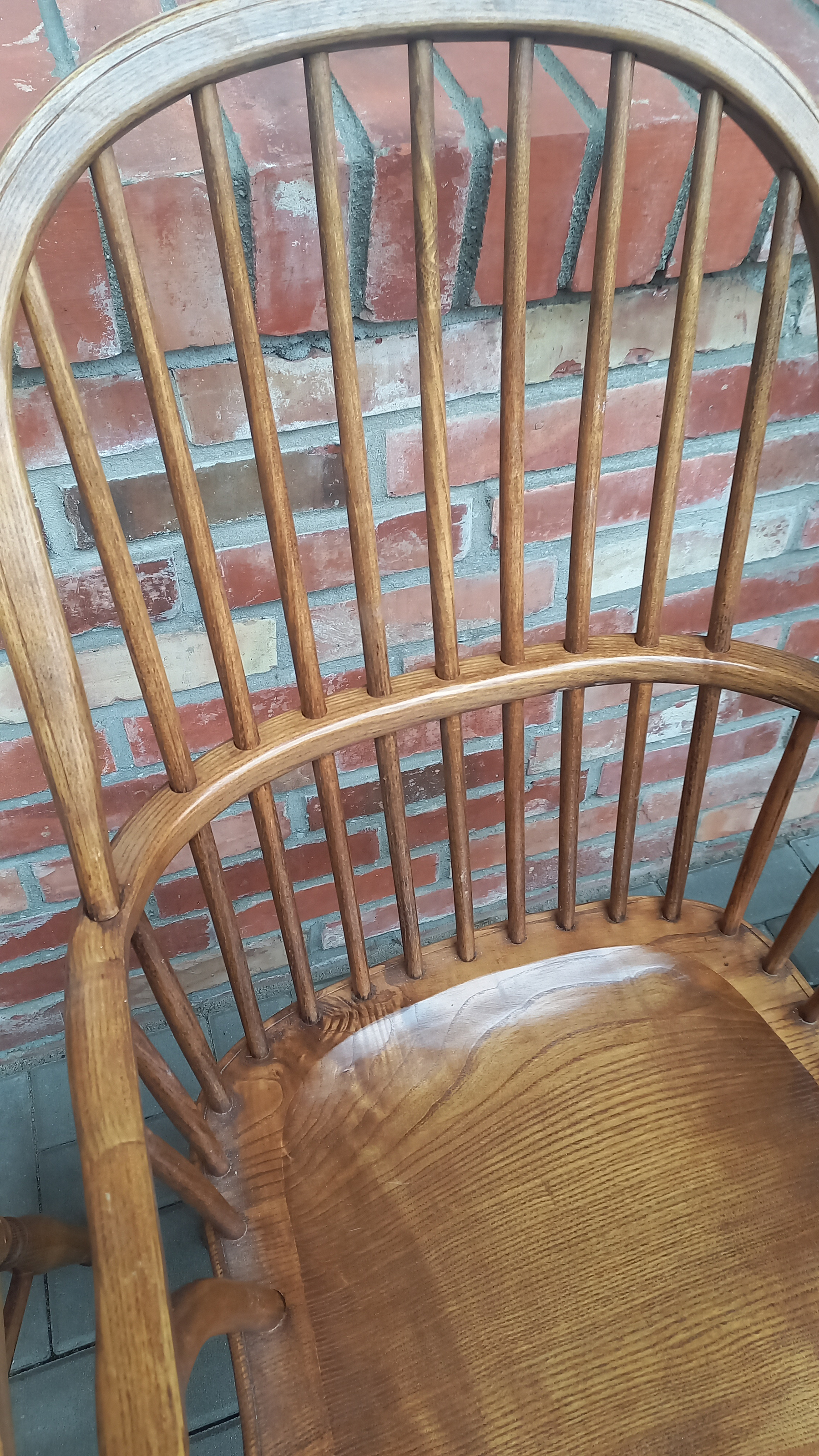 Drewniane stelaże są stabilne i sztywne z niewielkimi śladami użytkowania w postaci przetarć i rysek. Fotele w sprzedaży bez poduszek.