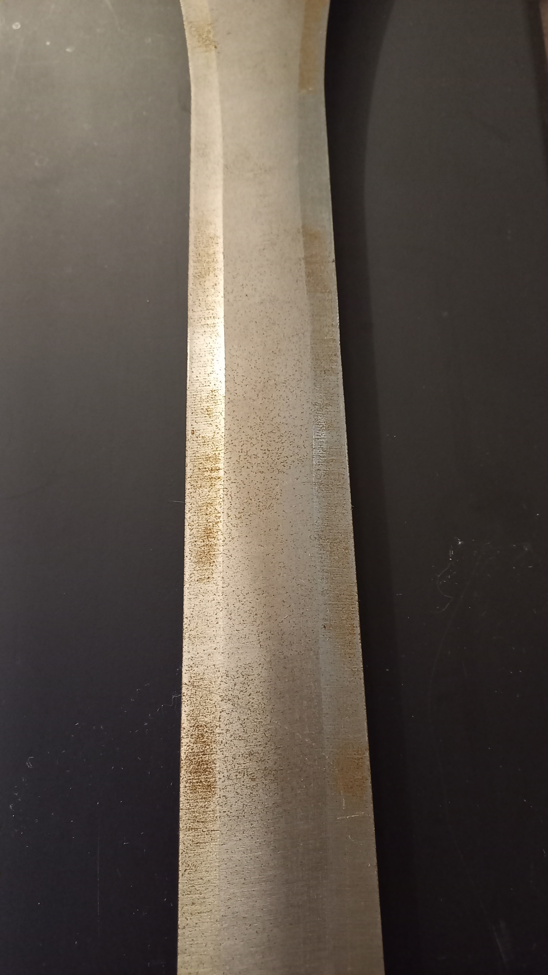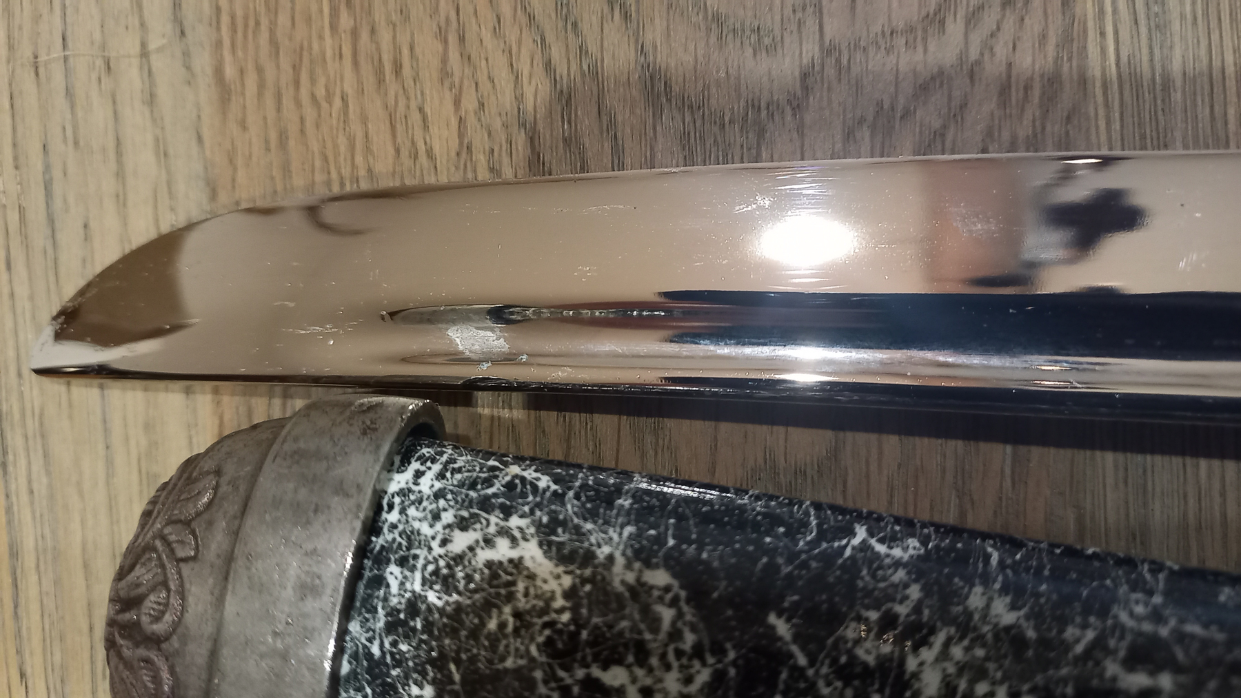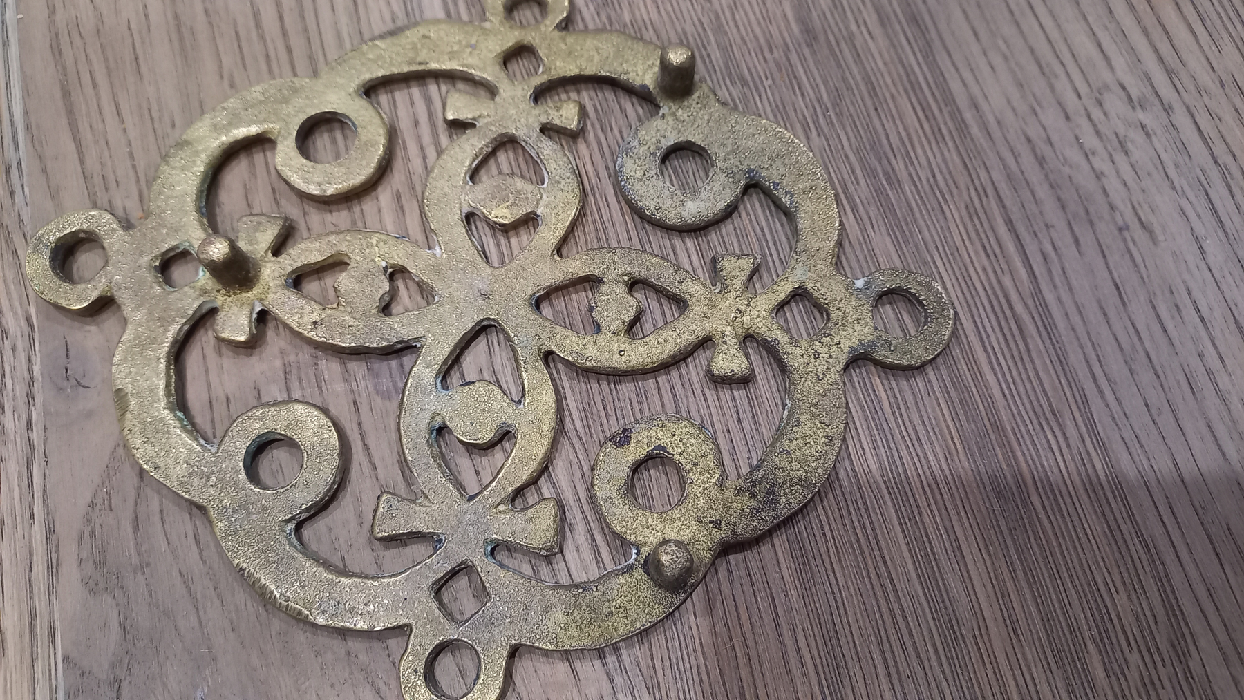 Na metalu widnieją ślady użytkowania pokazane na zdjęciach (przebarwienia, zabrudzenia od wosku, zagięcia)