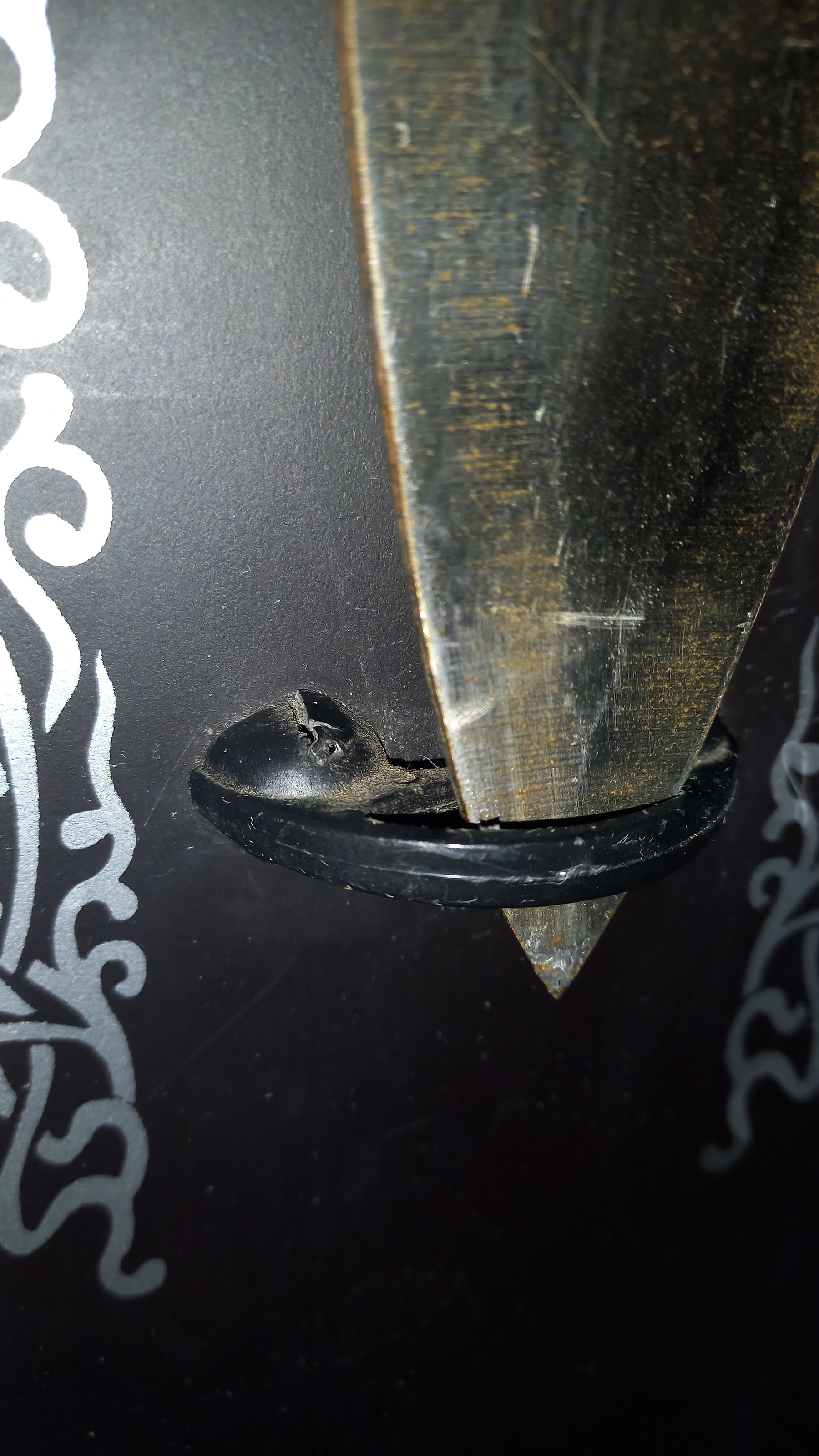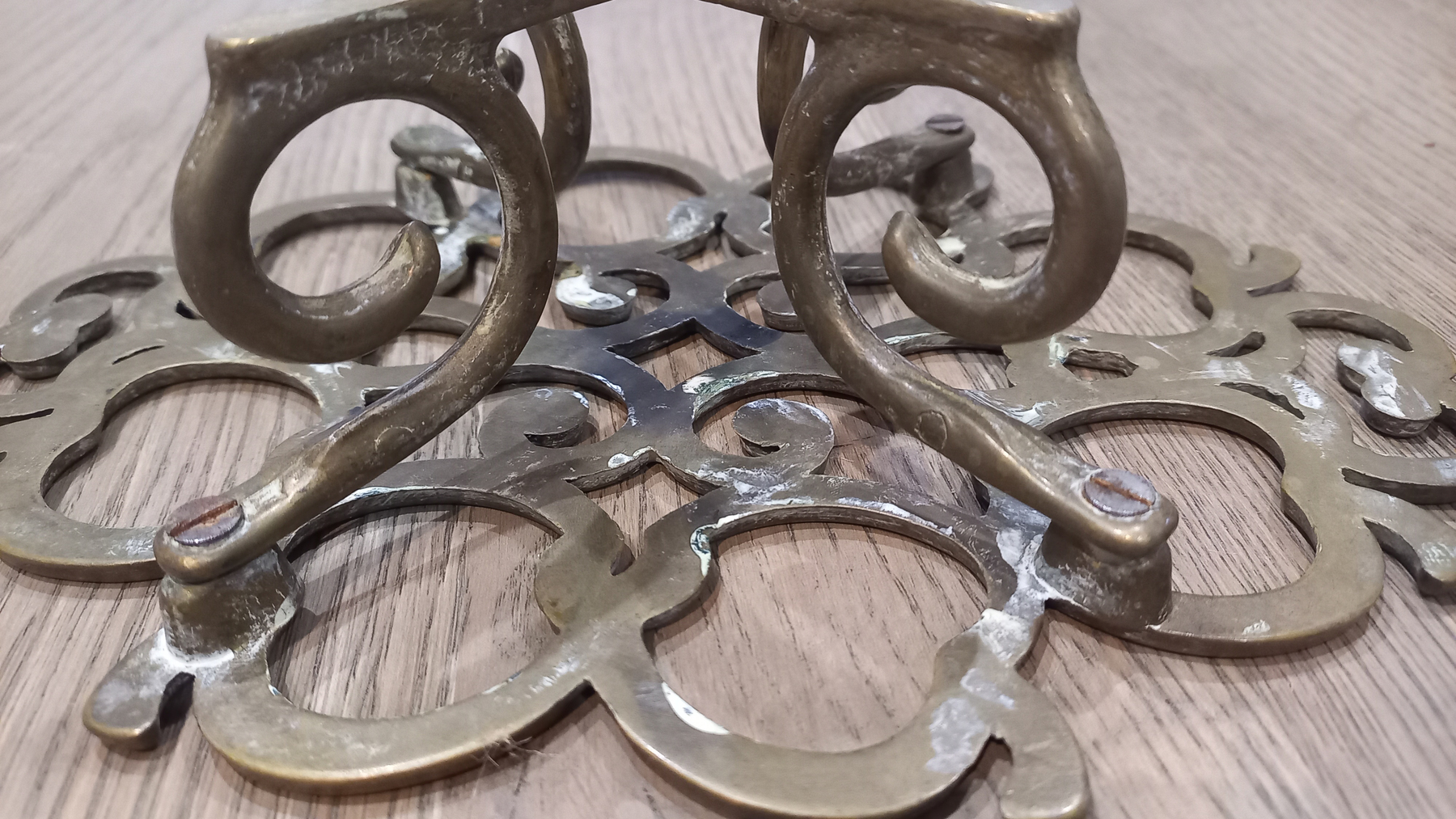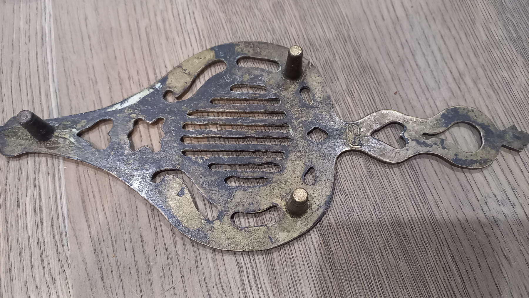 Na metalu widnieją ślady użytkowania pokazane na zdjęciach (przebarwienia, zabrudzenia od wosku, zagięcia)
