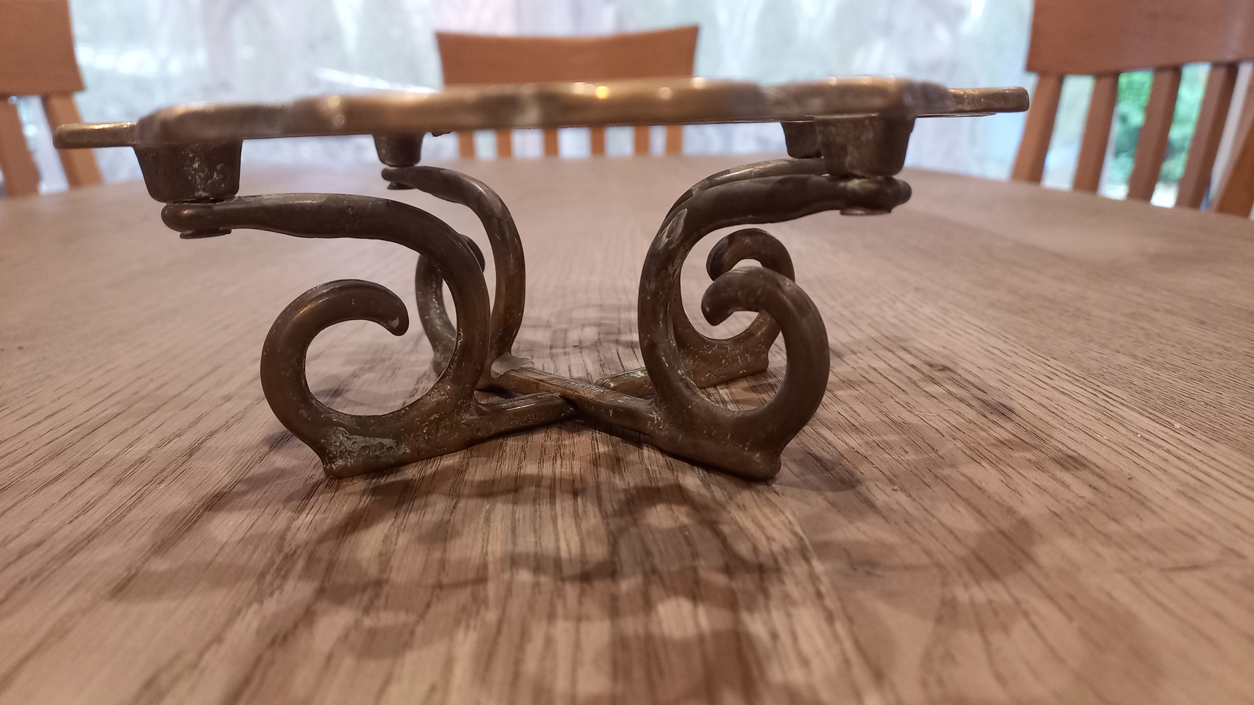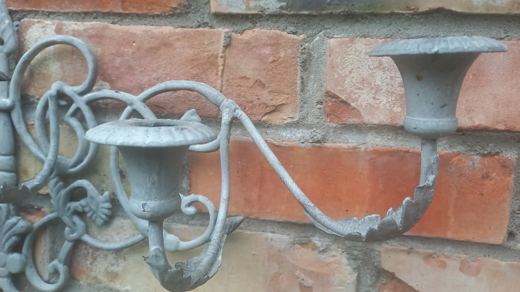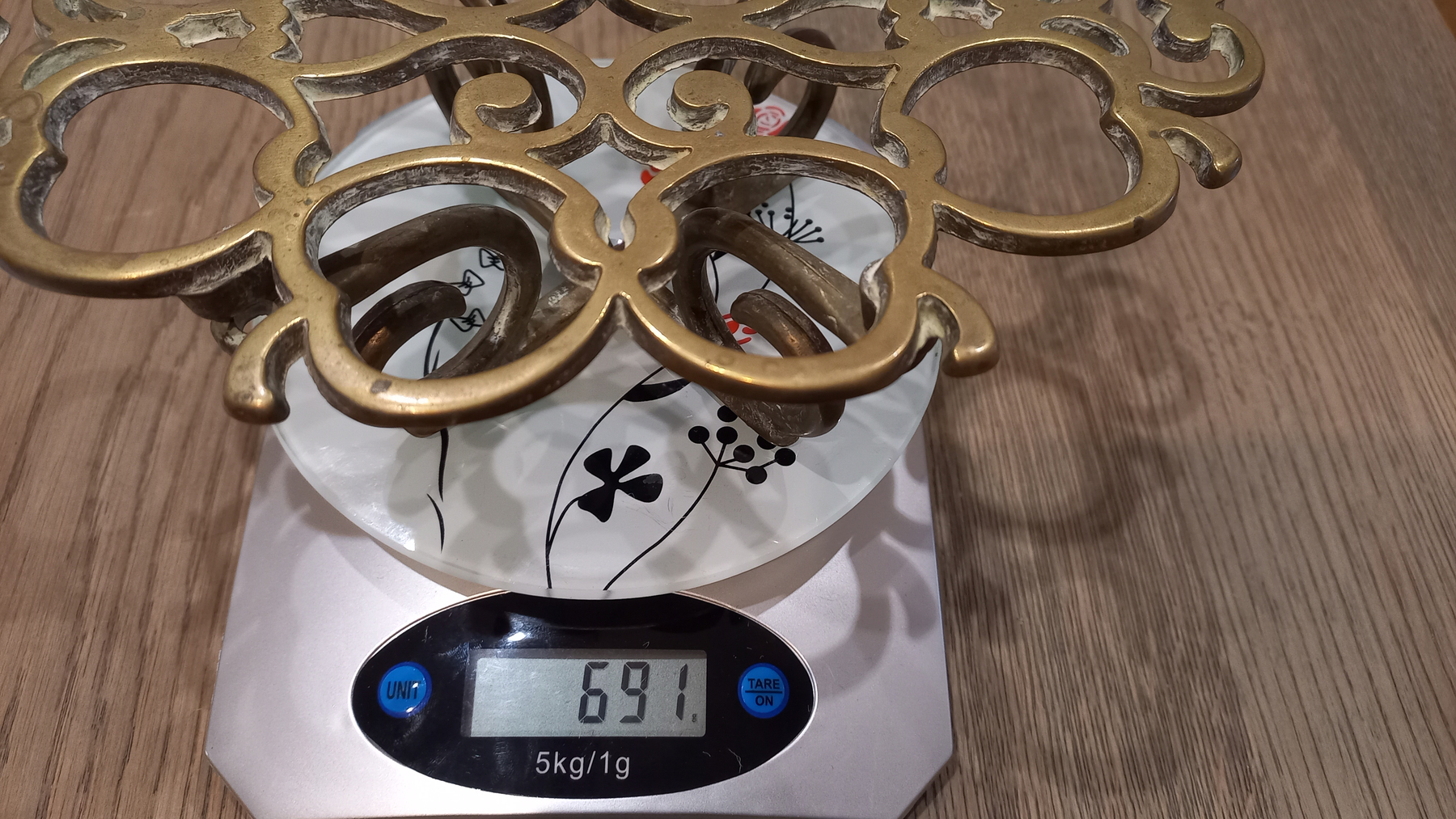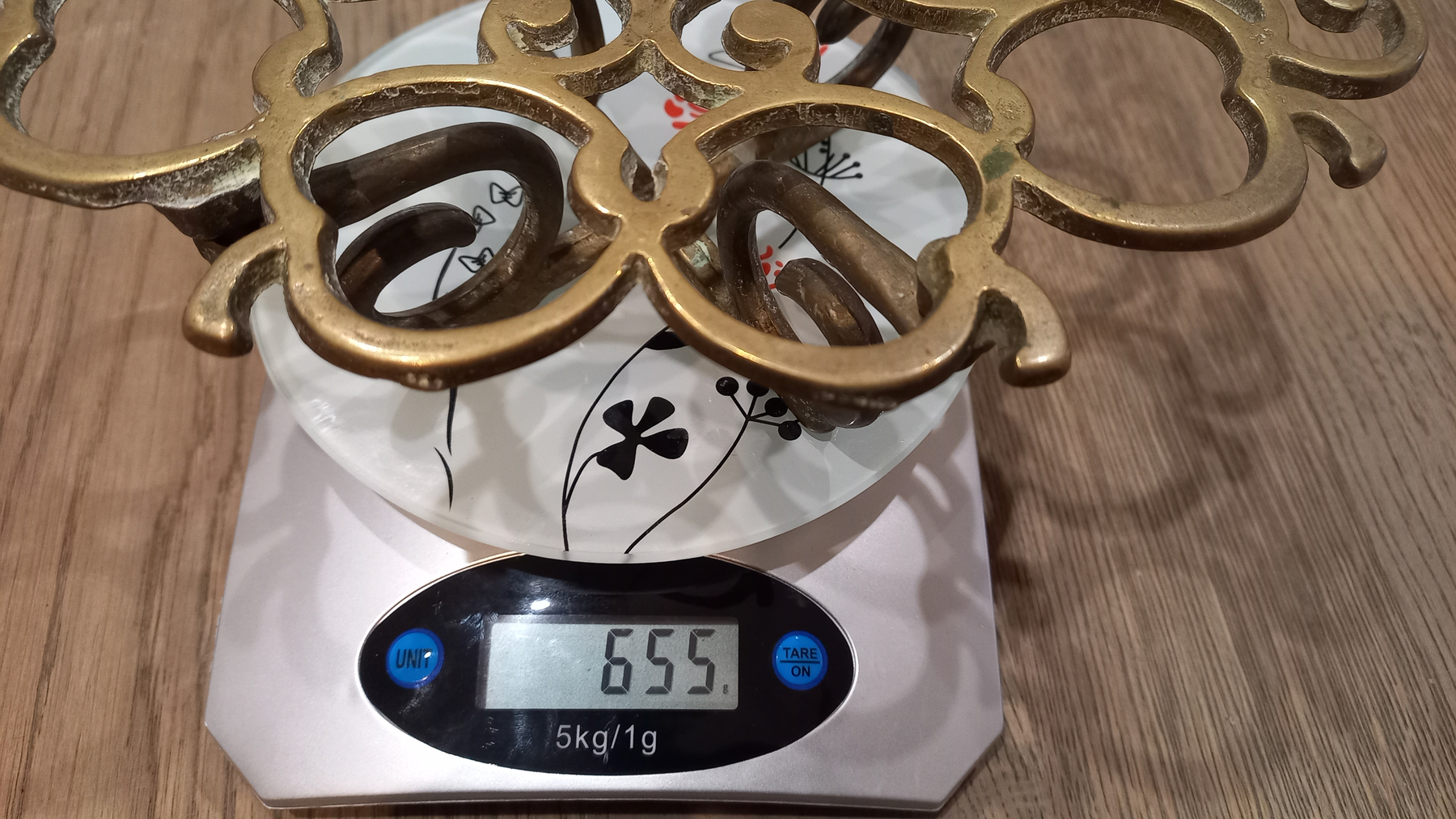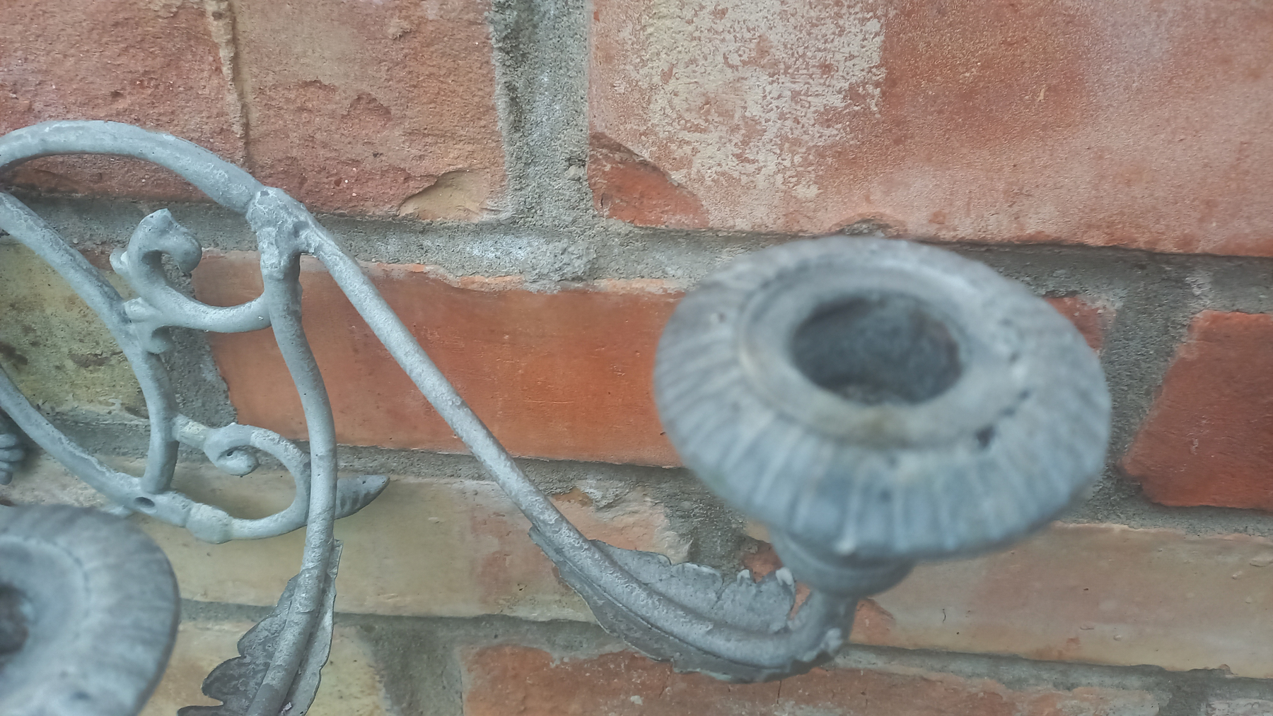 Na metalu widnieją ślady użytkowania pokazane na zdjęciach (swiecznik jest delikatnie przechylony). Świecznik jest rozkręcany.