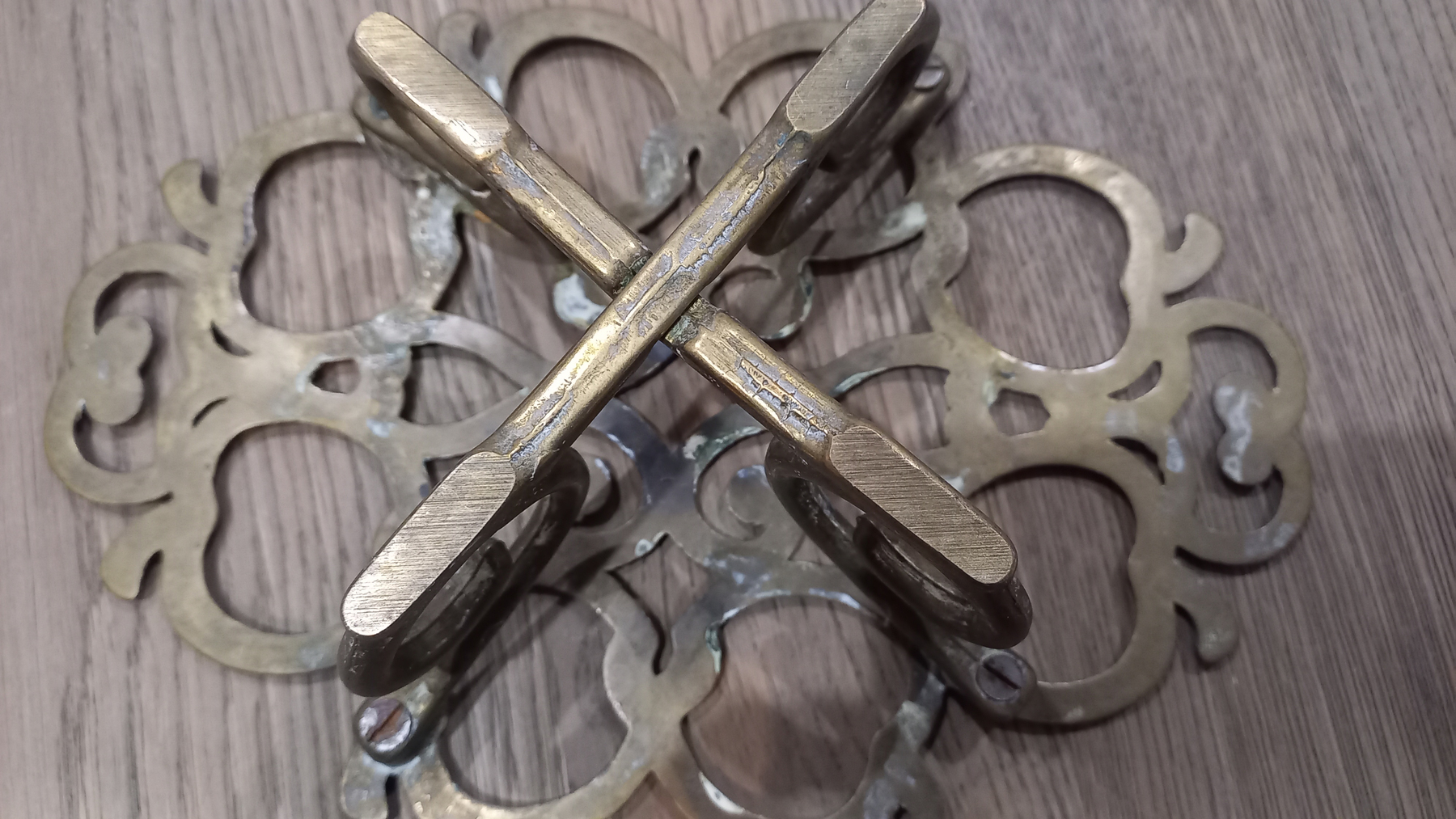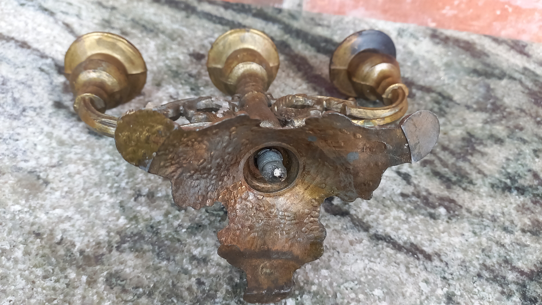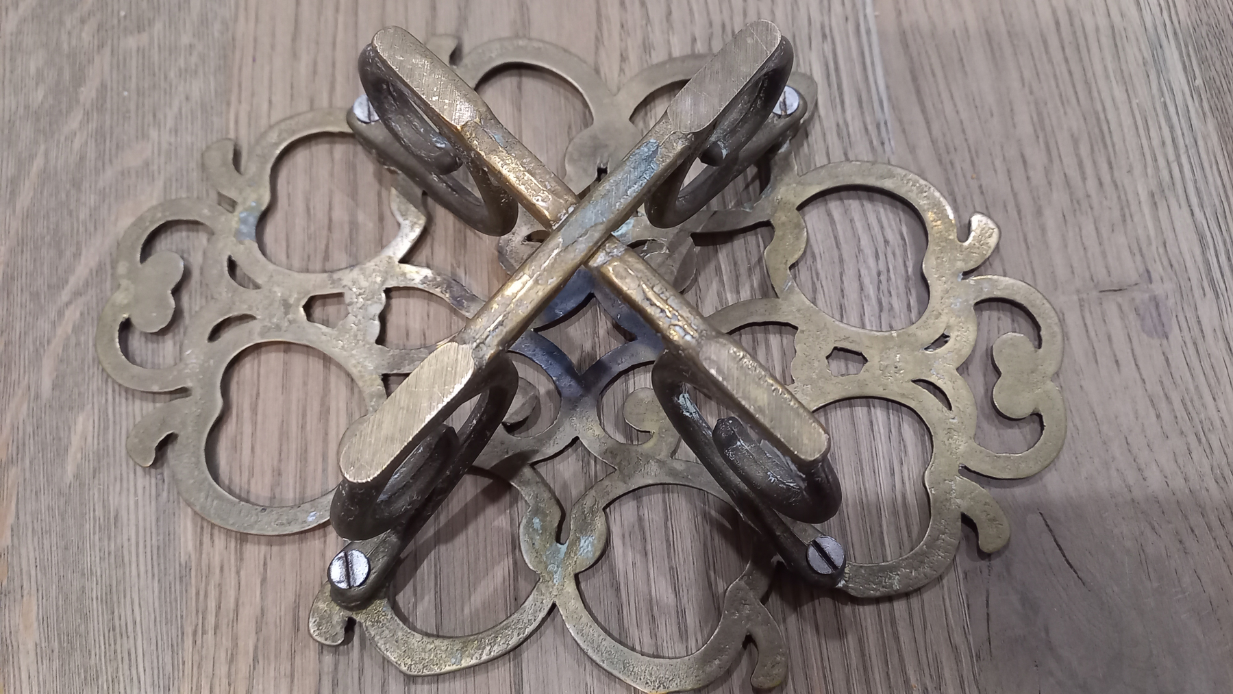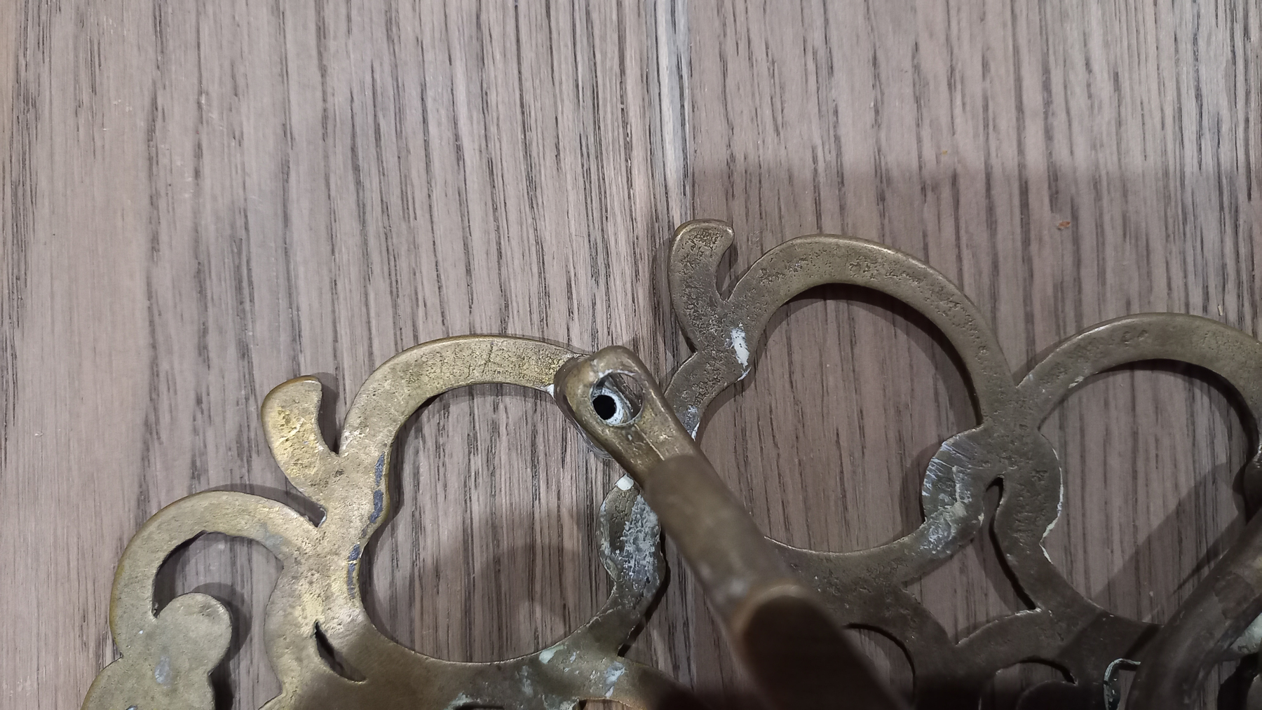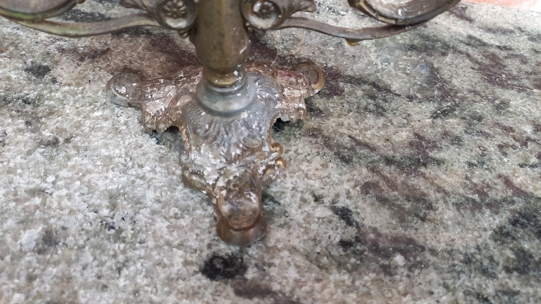 Na metalu widnieją ślady użytkowania pokazane na zdjęciach (swiecznik jest delikatnie przechylony). Świecznik jest rozkręcany.