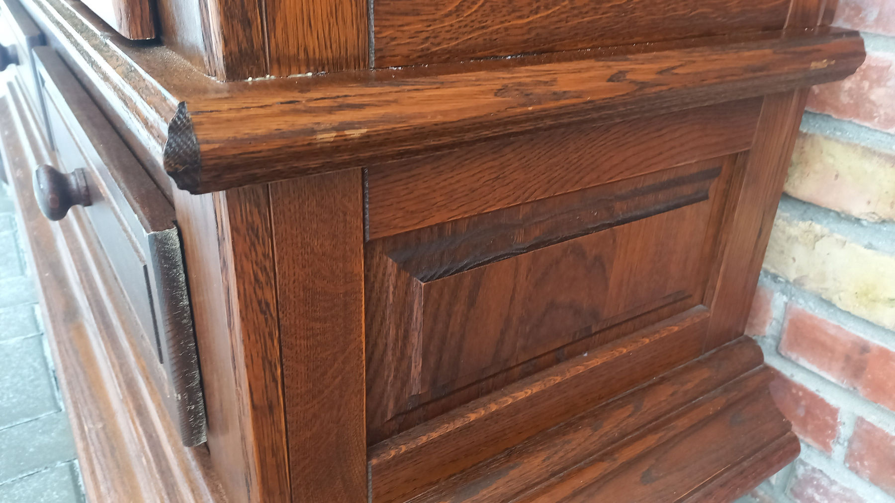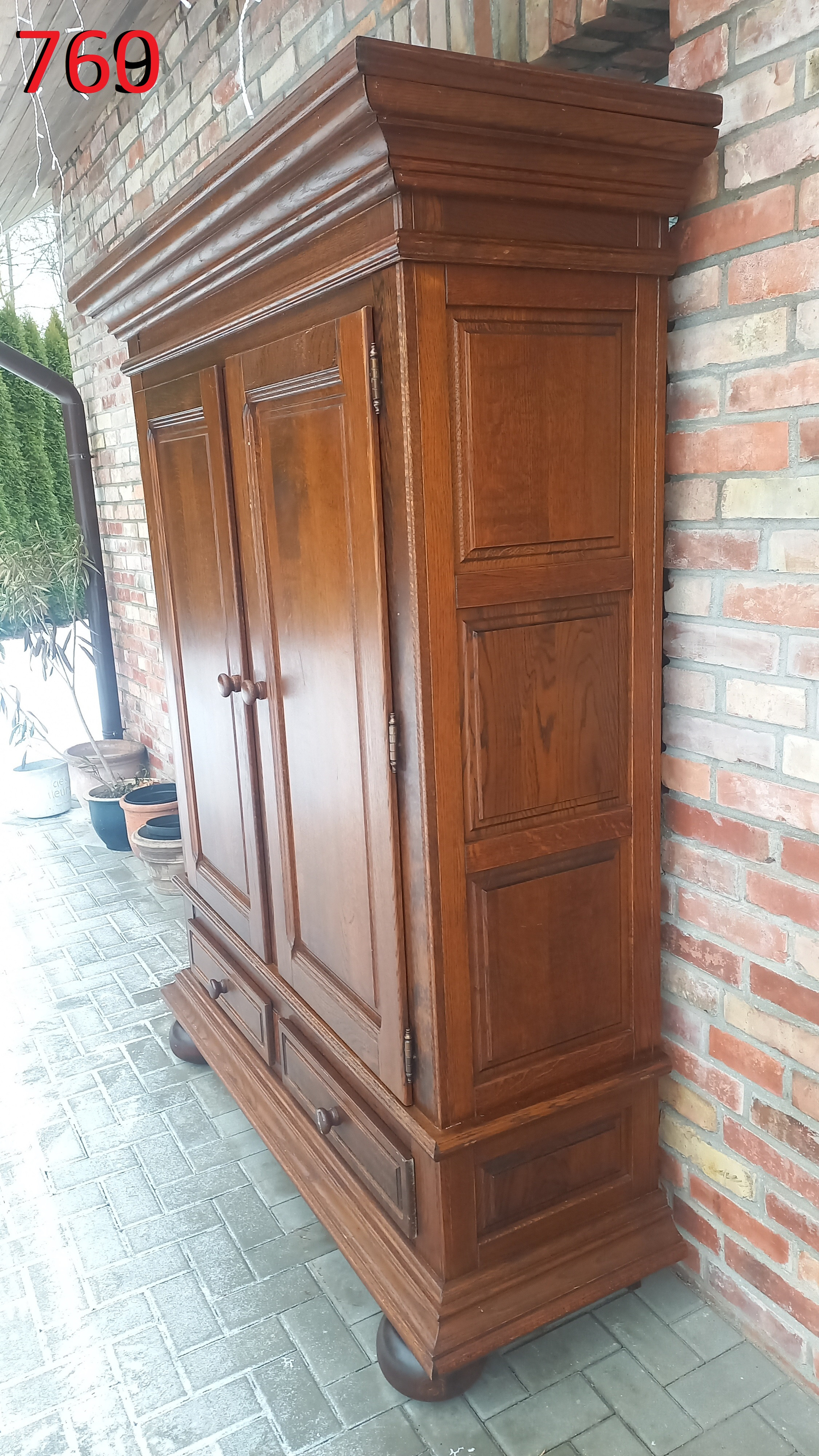 Na meblu widnieją ślady użytkowania pokazane na zdjęciach. Szafa nie rozkłada się na części. Do domu lub mieszkania trzeba wnieść ją w całości.