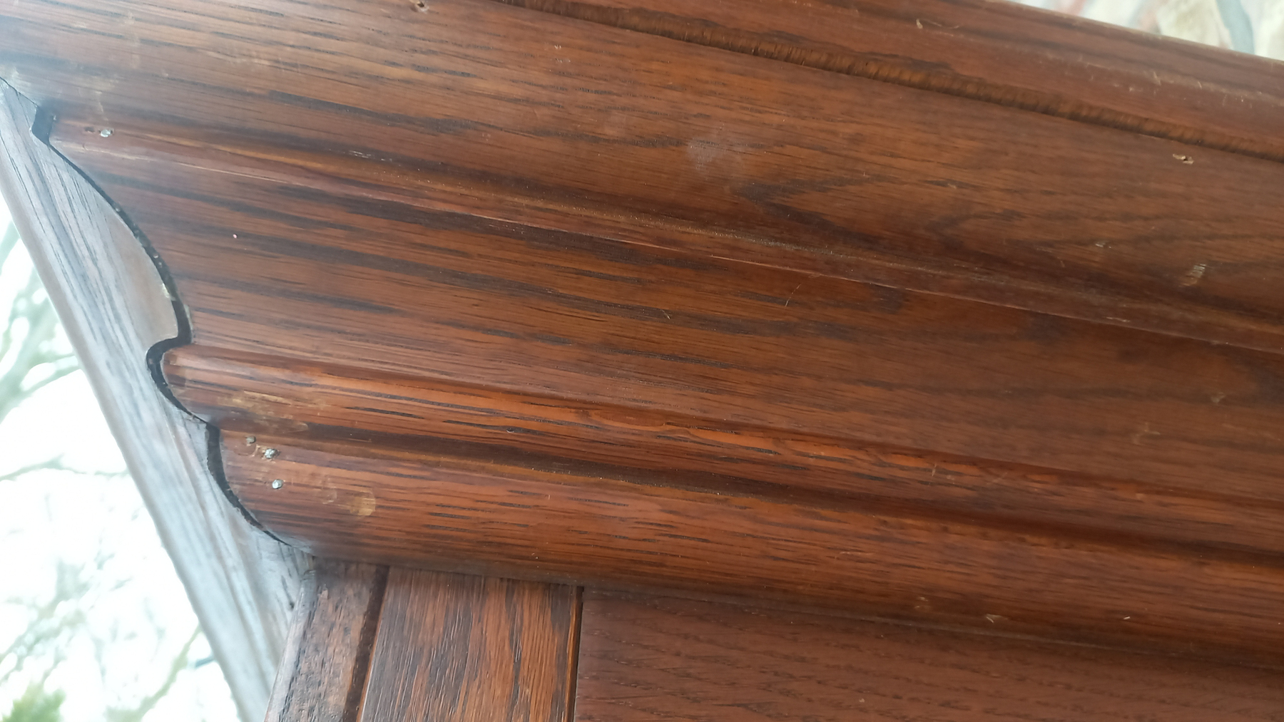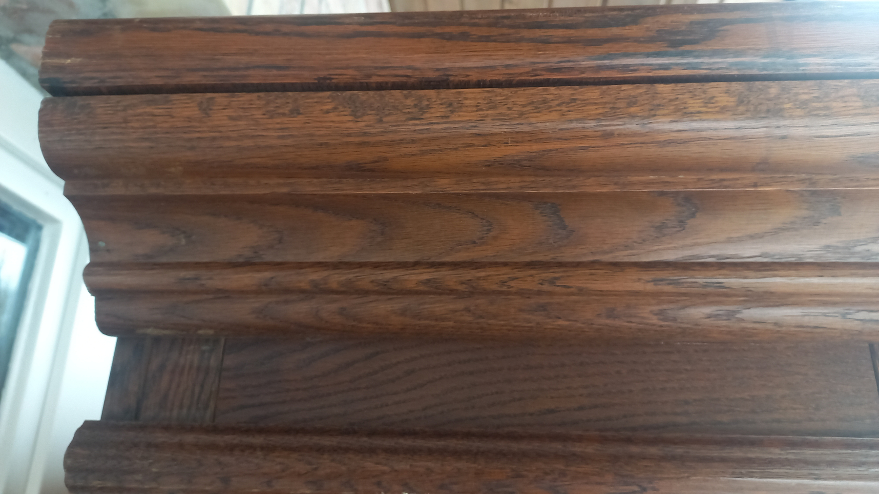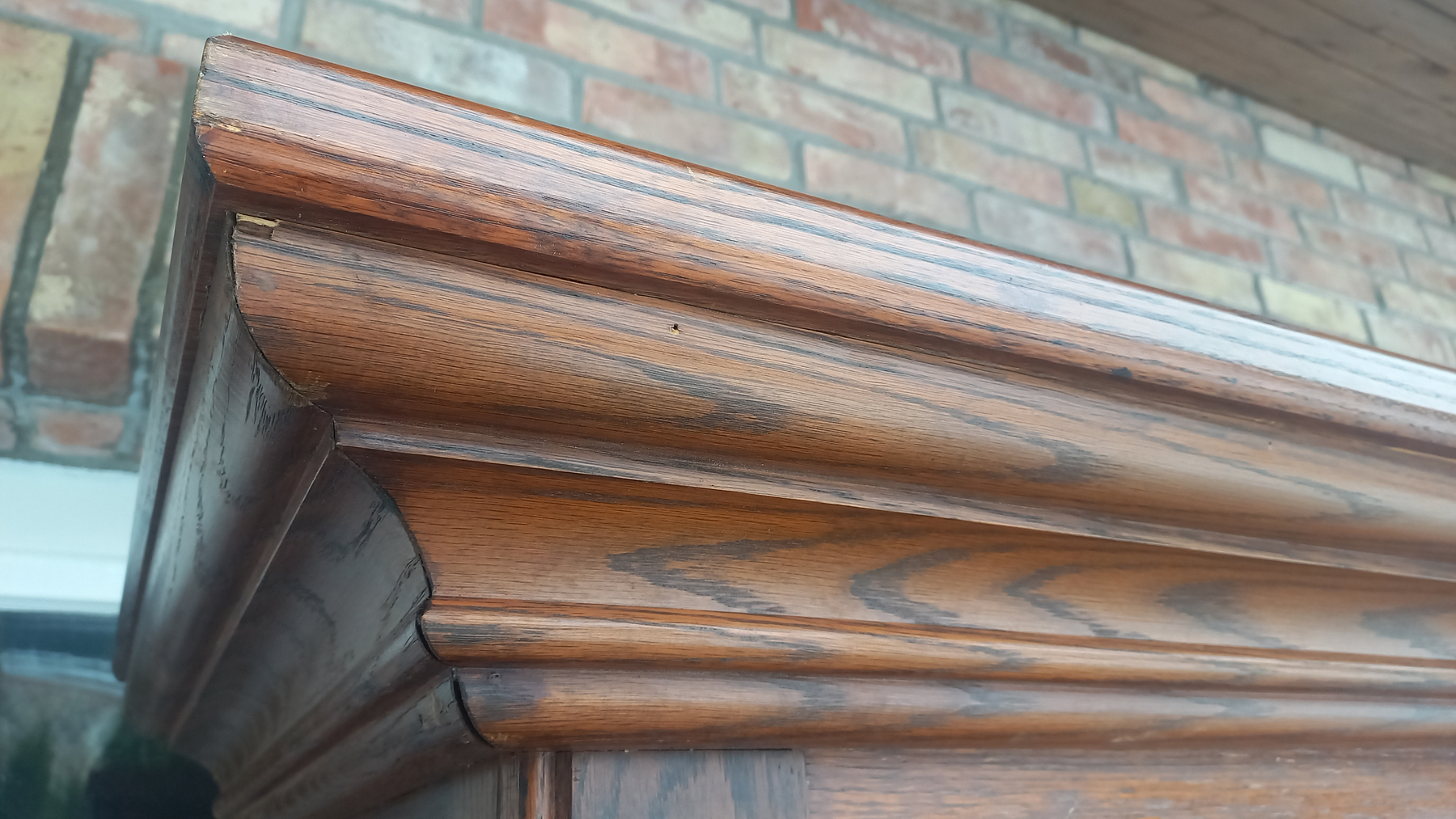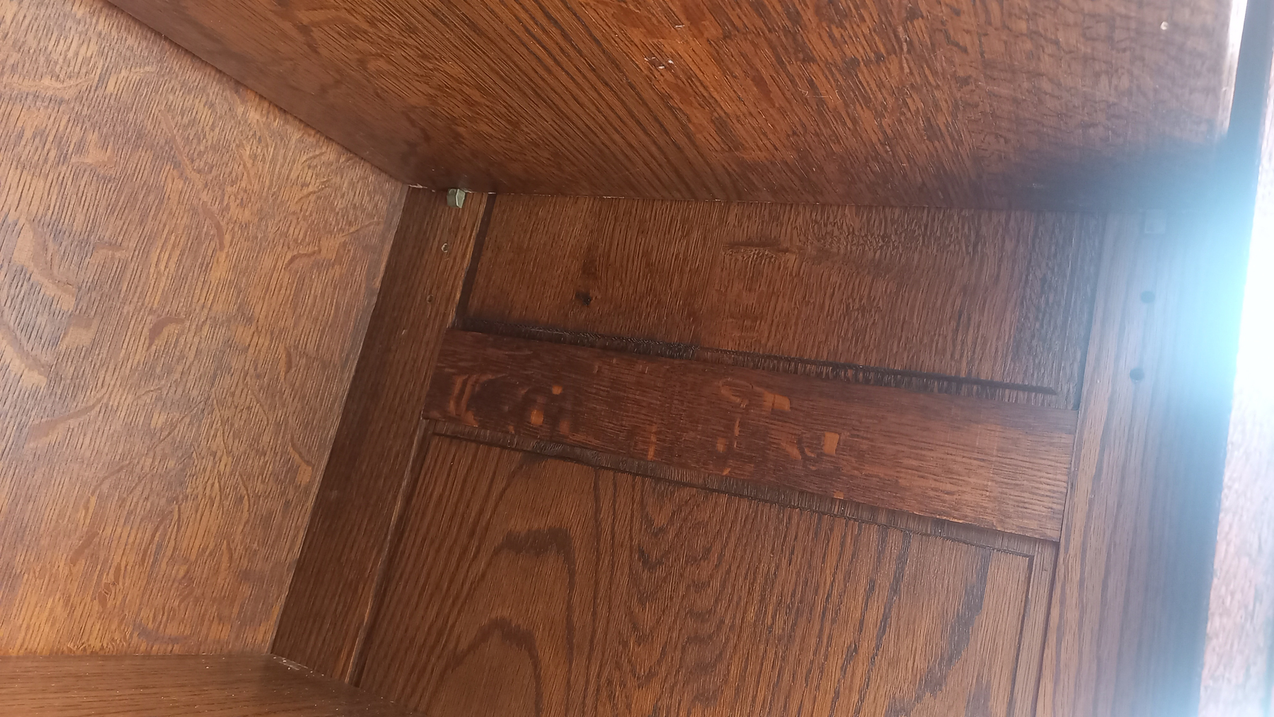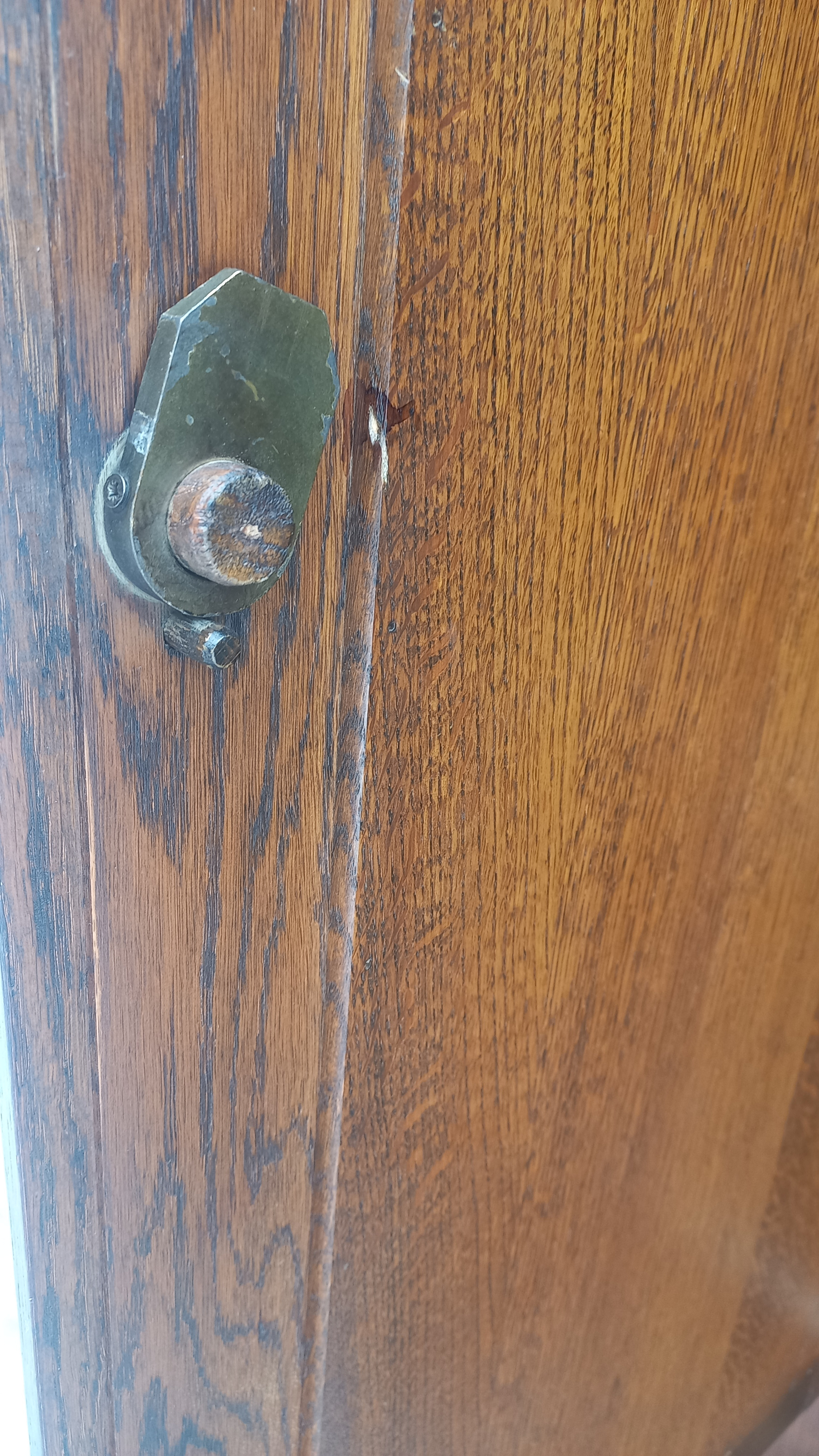 Szafa wykonana z drewna dębowego oraz płyty stolarskiej fornirowanej. Szafa dwudrzwiowa z półkami i szufladami.