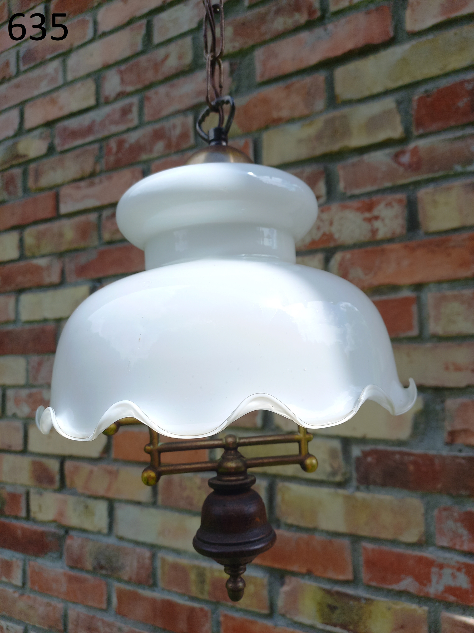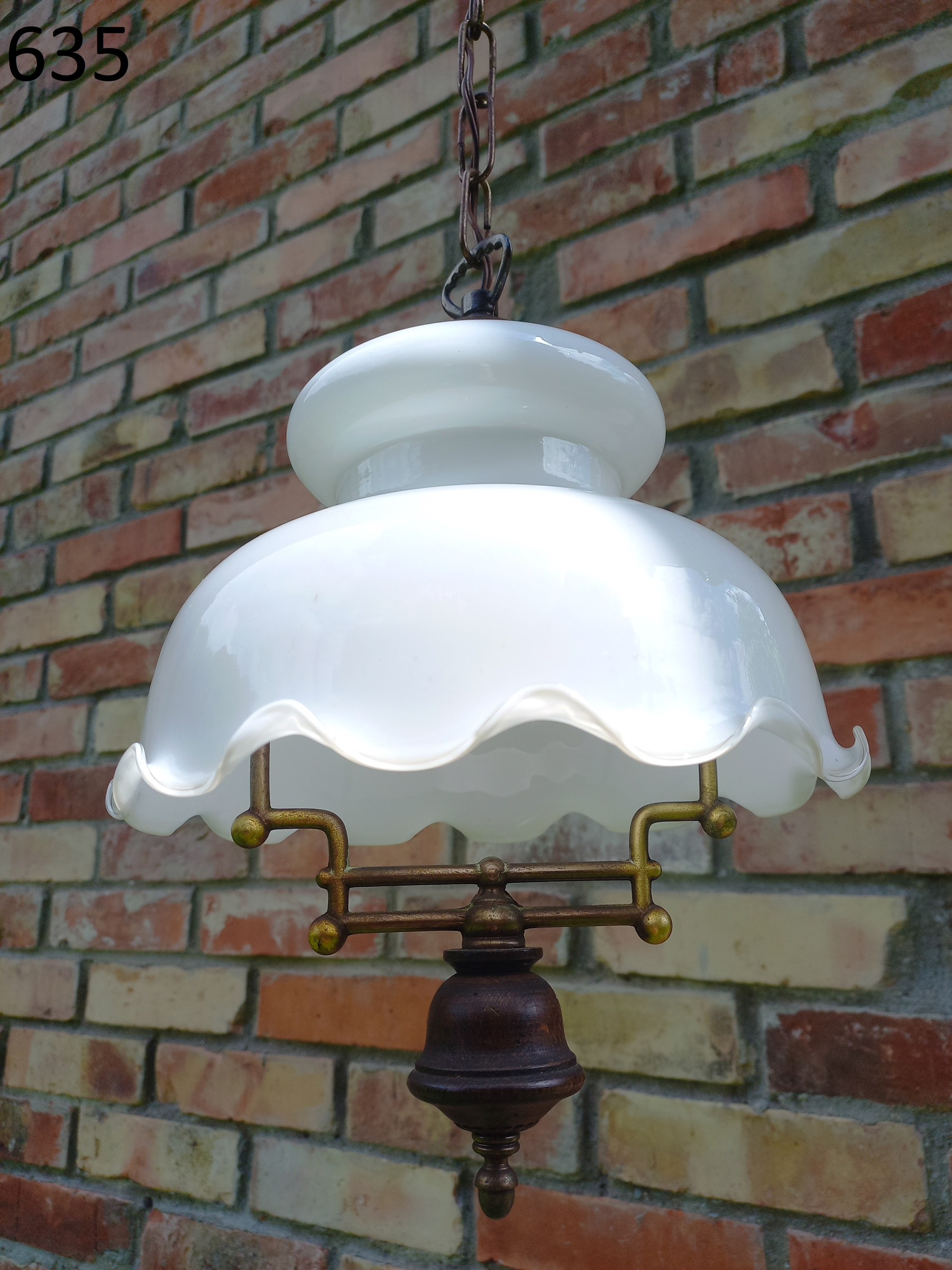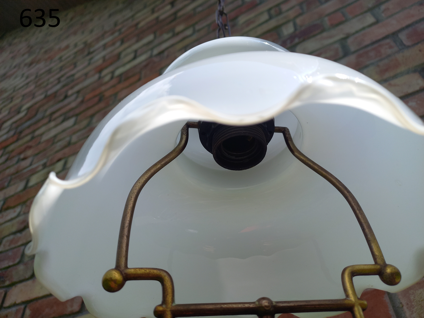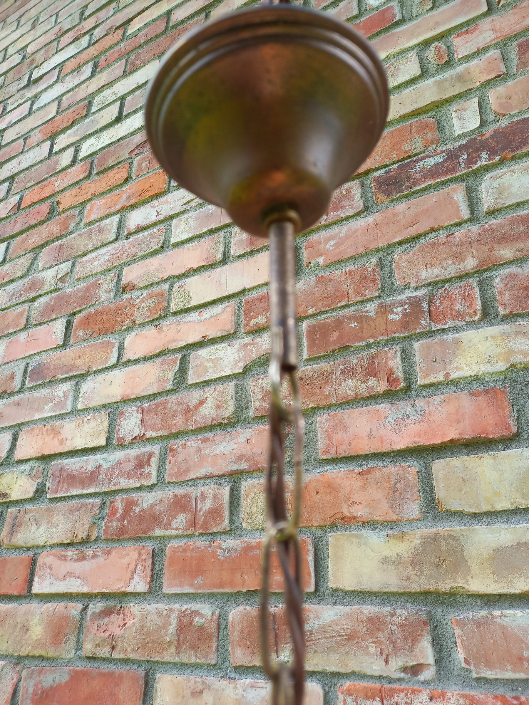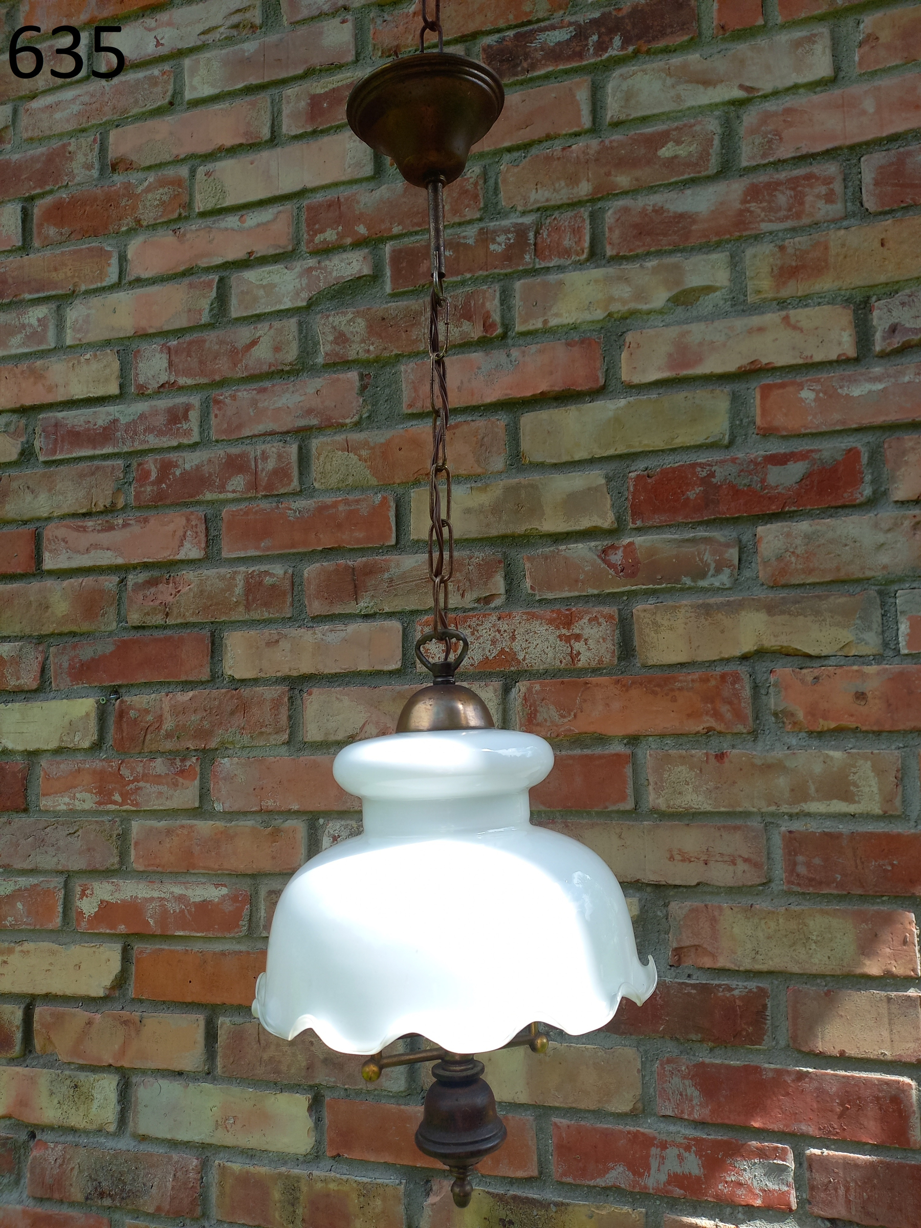 Instalacja elektryczna jest sprawna. Szklany klosz jest cały. Na metalu widnieją niewielkie ślady upływu czasu. Osłonka przy żarówce jest lekko pęknięta.
