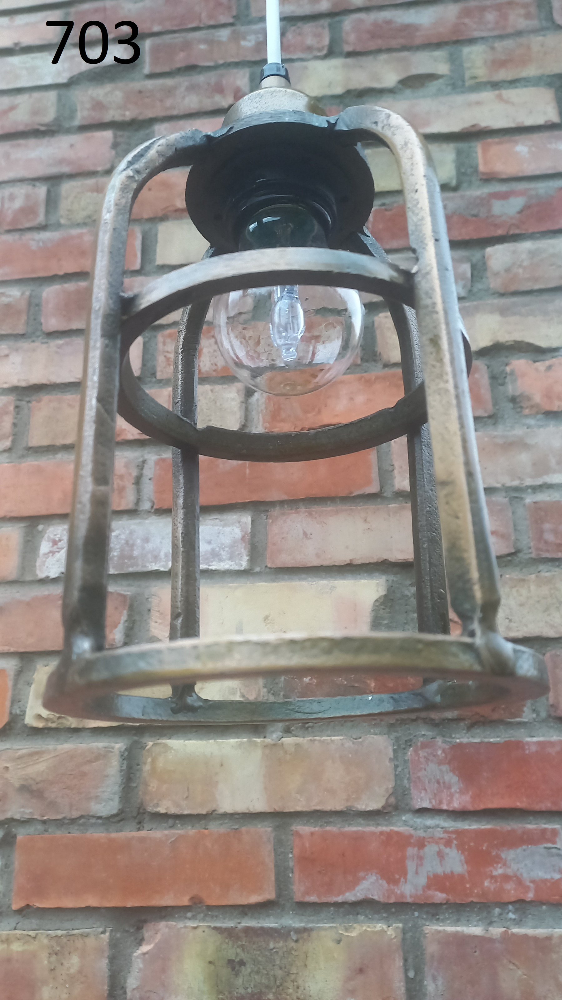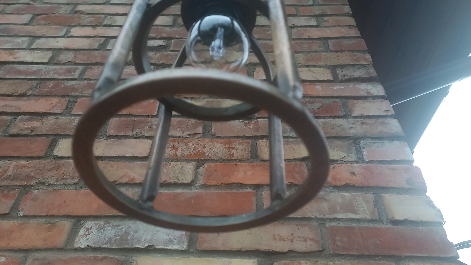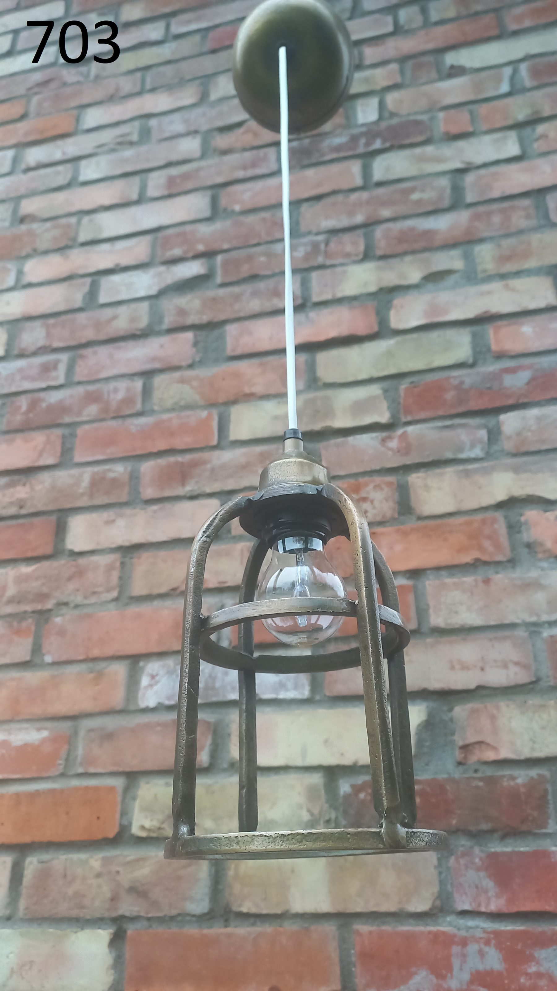 Instalacja elektryczna jest sprawna. Szklany klosz jest cały. Metal ze śladami użytkowania.